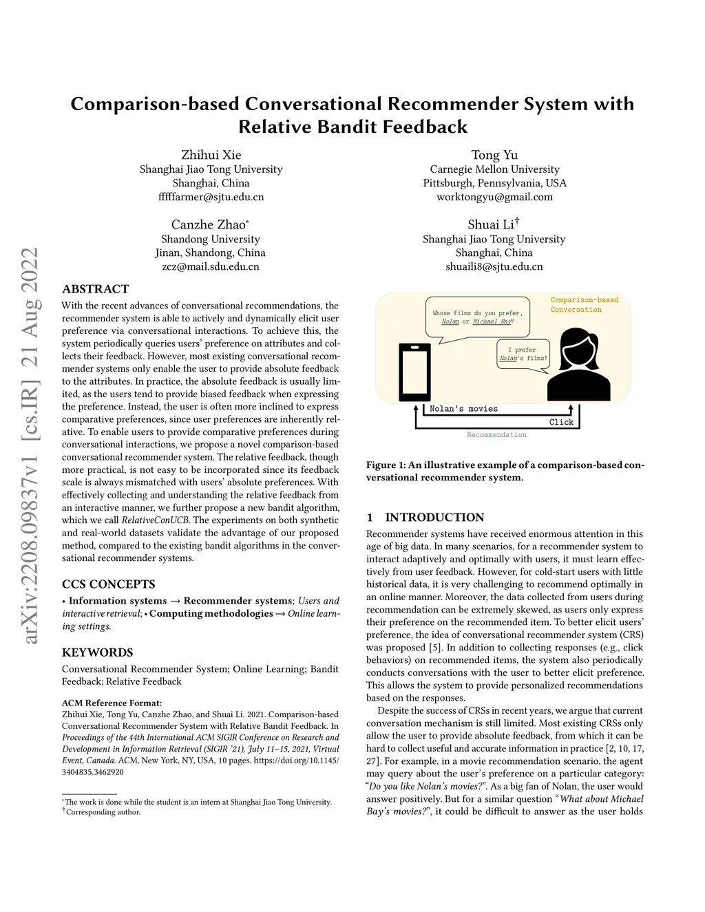 Comparison-based Conversational Recommender System with Relative Bandit