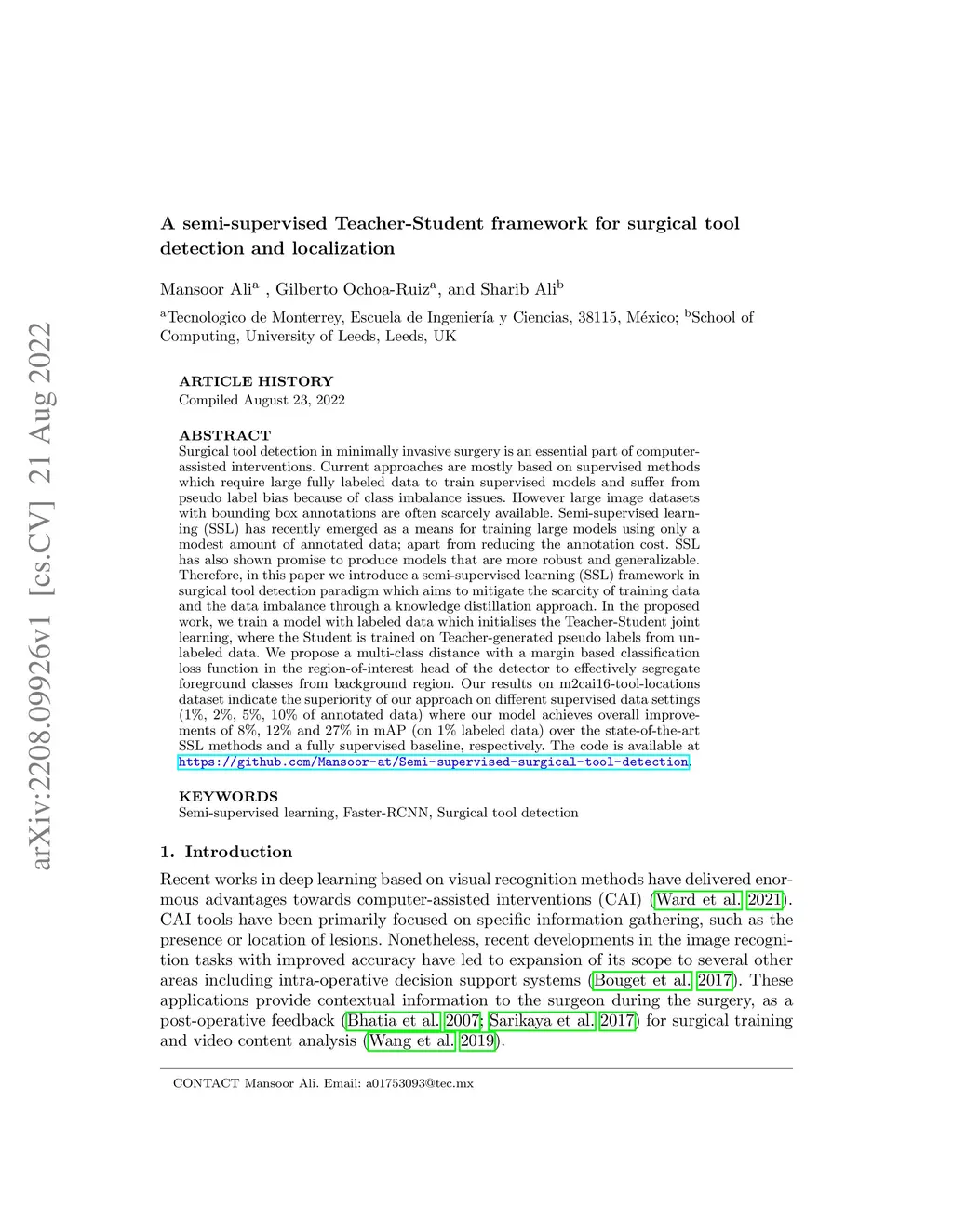 A semi-supervised Teacher-Student framework for surgical tool detection
