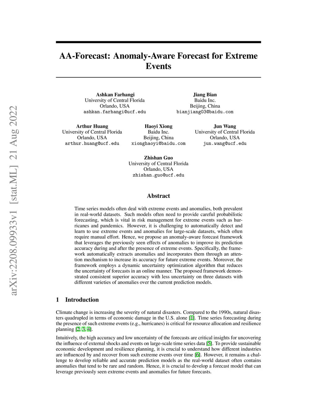 Time series models often deal with extreme events and anomalies, both prevalent in real-world datasets. Such models often need to provide careful probabilistic forecasting, which is vital in risk management for extreme events such as hurricanes and pandemics. However, it is challenging to automatically detect and learn to use extreme events and anomalies for large-scale datasets, which often require manual effort. Hence, we propose an anomaly-aware forecast framework that leverages the previously seen effects of anomalies to improve its prediction accuracy during and after the presence of extreme events. Specifically, the framework automatically extracts anomalies and incorporates them through an attention mechanism to increase its accuracy for future extreme events. Moreover, the framework employs a dynamic uncertainty optimization algorithm that reduces the uncertainty of forecasts in an online manner. The proposed framework demonstrated consistent superior accuracy with less uncertainty on three datasets with different varieties of anomalies over the current prediction models.