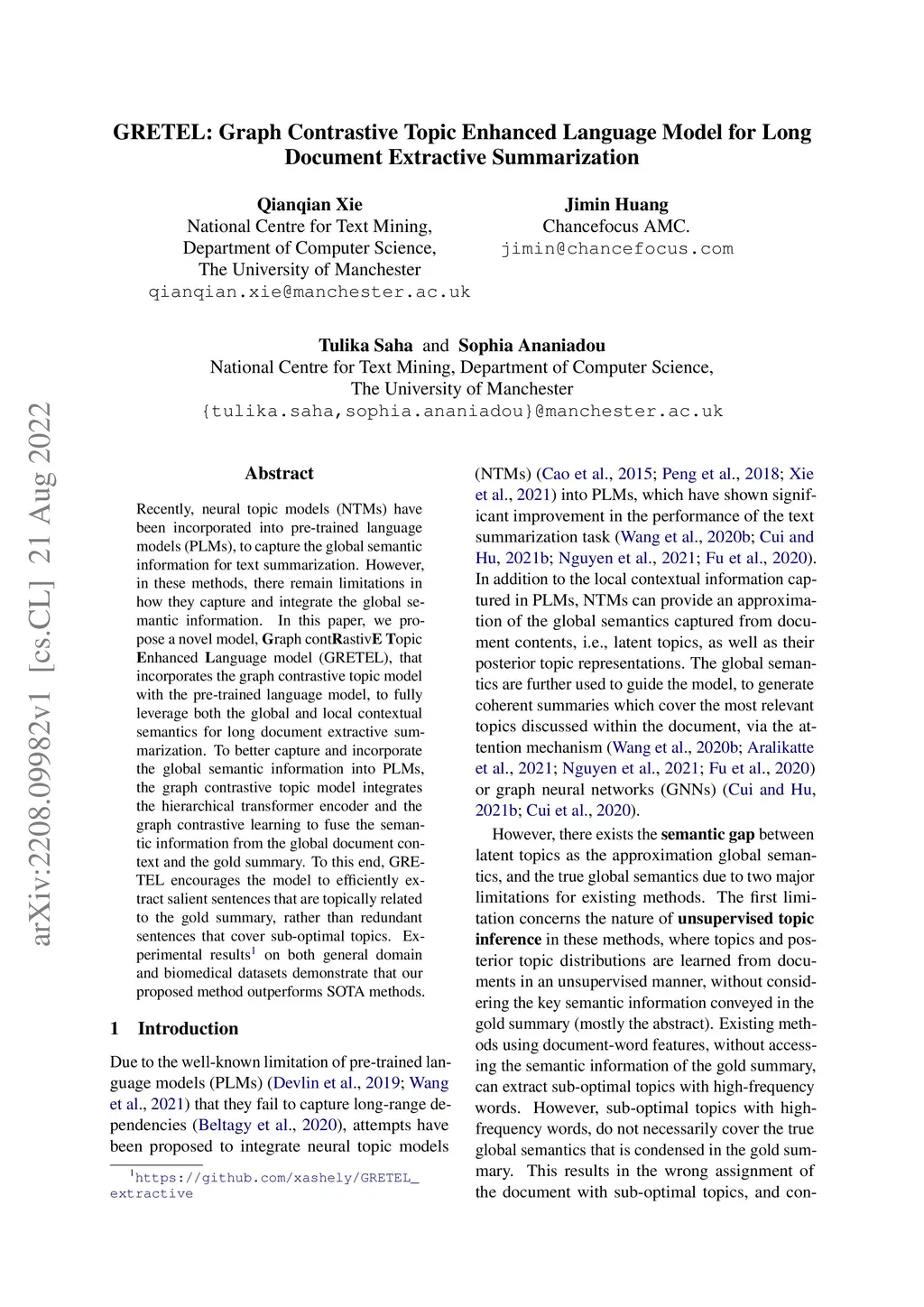 GRETEL: Graph Contrastive Topic Enhanced Language Model for Long