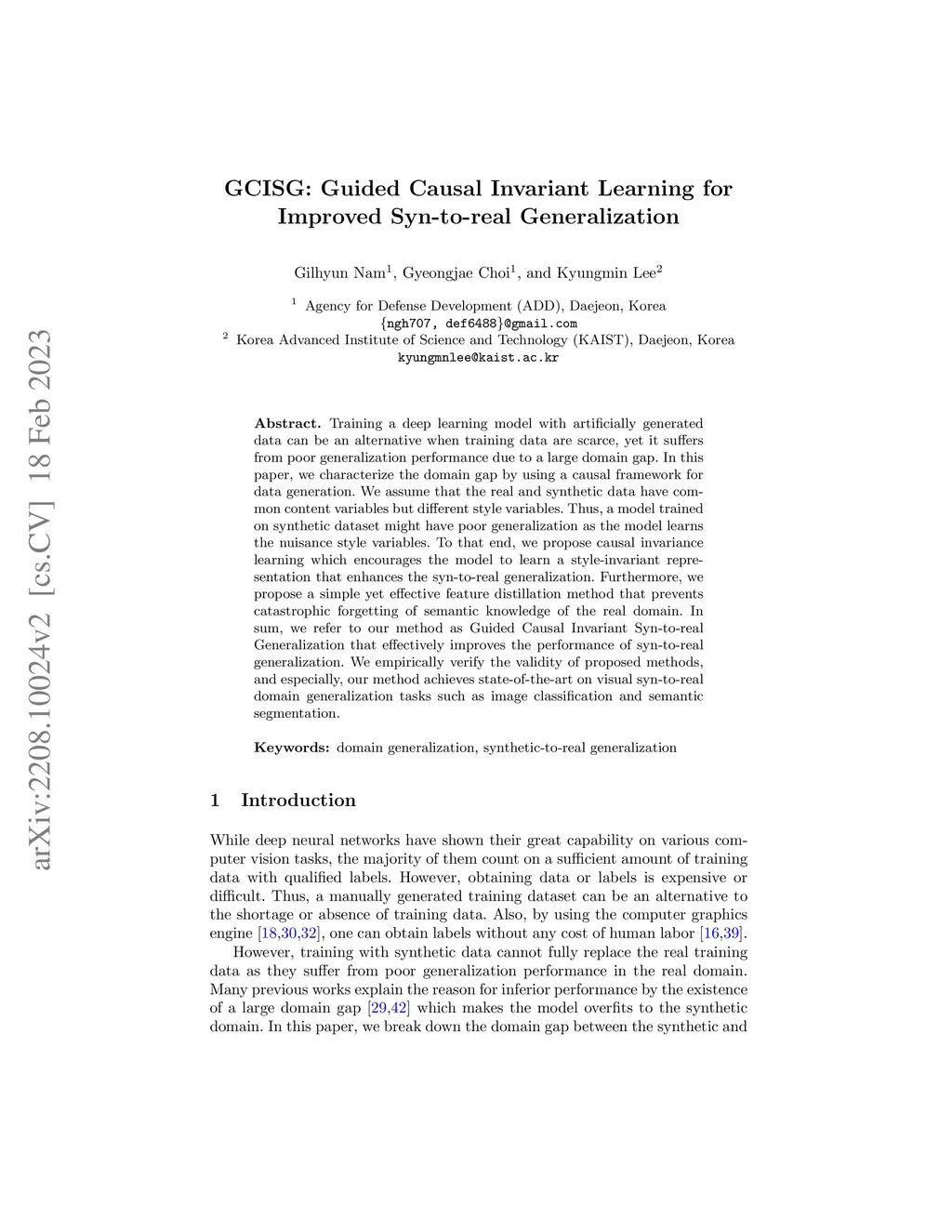 GCISG: Guided Causal Invariant Learning for Improved Syn-to-real