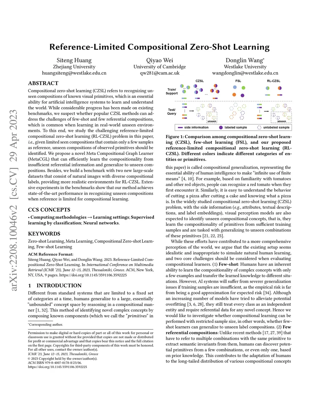 Compositional zero-shot learning (CZSL) refers to recognizing unseen compositions of known visual primitives, which is an essential ability for artificial intelligence systems to learn and understand the world. While considerable progress has been made on existing benchmarks, we suspect whether popular CZSL methods can address the challenges of few-shot and few referential compositions, which is common when learning in real-world unseen environments. To this end, we study the challenging reference-limited compositional zero-shot learning (RL-CZSL) problem in this paper, i.e., given limited seen compositions that contain only a few samples as reference, unseen compositions of observed primitives should be identified. We propose a novel Meta Compositional Graph Learner (MetaCGL) that can efficiently learn the compositionality from insufficient referential information and generalize to unseen compositions. Besides, we build a benchmark with two new large-scale datasets that consist of natural images with diverse compositional labels, providing more realistic environments for RL-CZSL. Extensive experiments in the benchmarks show that our method achieves state-of-the-art performance in recognizing unseen compositions when reference is limited for compositional learning.