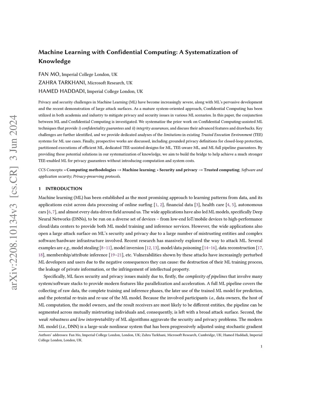 Machine Learning with Confidential Computing: A Systematization of