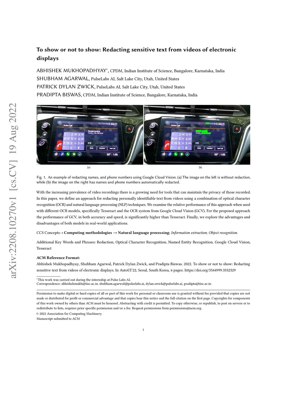 With the increasing prevalence of video recordings there is a growing need for tools that can maintain the privacy of those recorded. In this paper, we define an approach for redacting personally identifiable text from videos using a combination of optical character recognition (OCR) and natural language processing (NLP) techniques. We examine the relative performance of this approach when used with different OCR models, specifically Tesseract and the OCR system from Google Cloud Vision (GCV). For the proposed approach the performance of GCV, in both accuracy and speed, is significantly higher than Tesseract. Finally, we explore the advantages and disadvantages of both models in real-world applications.