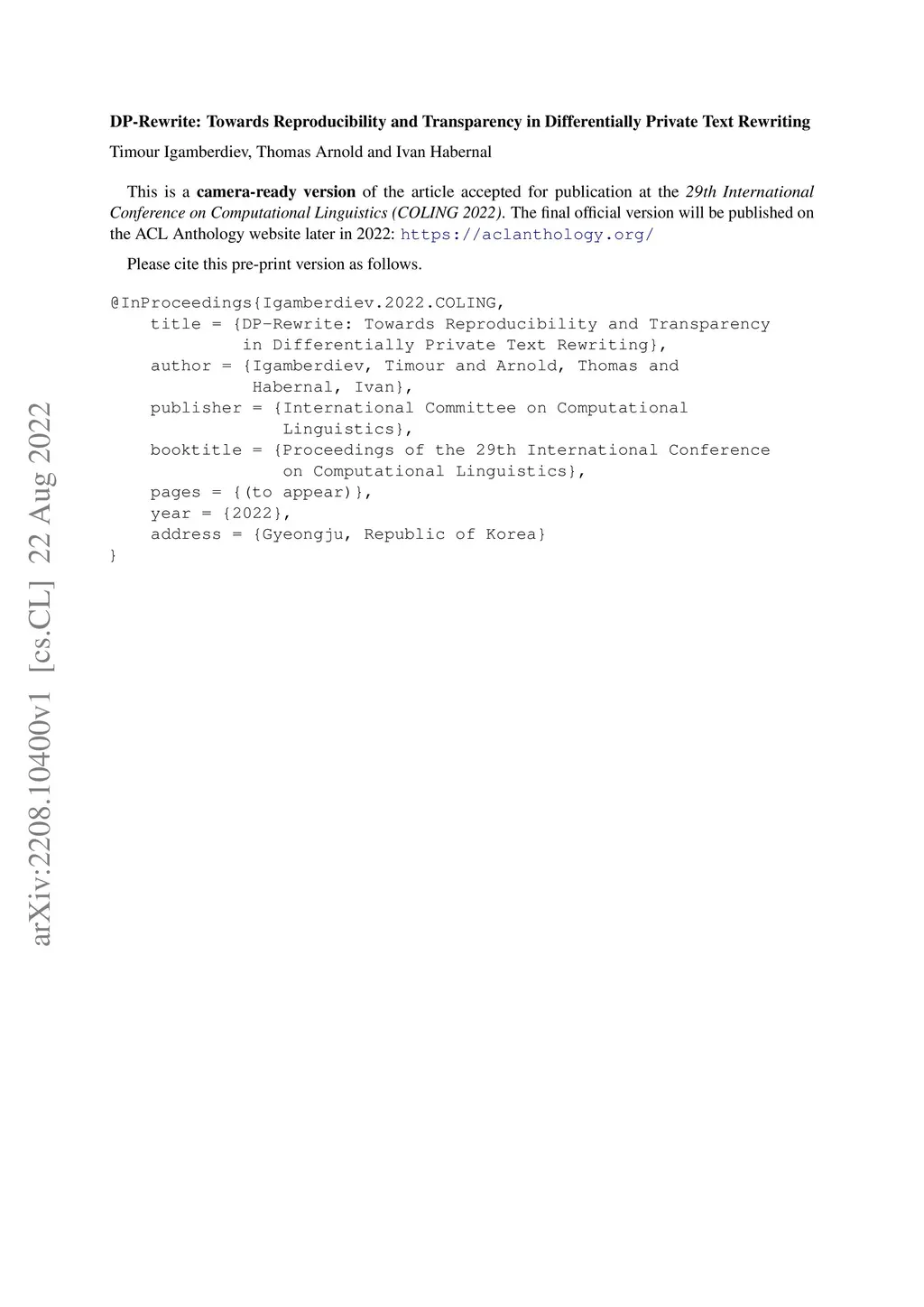 Private Text Rewriting