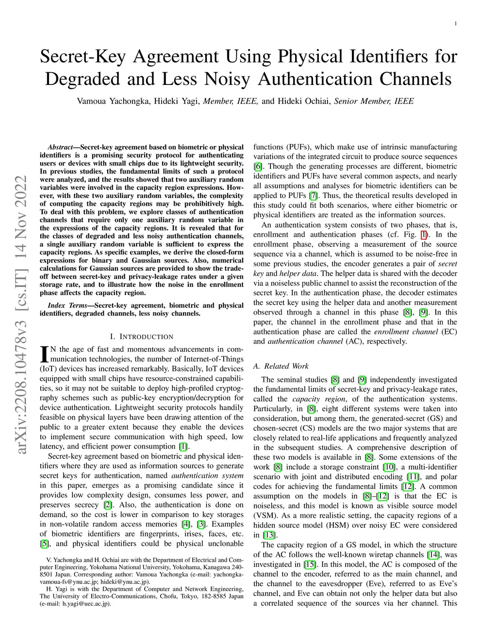 Secret-Key Agreement Using Physical Identifiers for Degraded and Less Noisy Authentication Channels