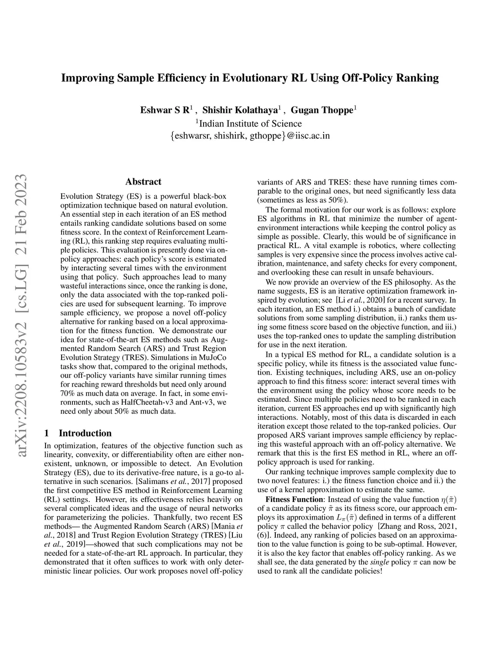 Improving Sample Efficiency in Evolutionary RL Using Off-Policy Ranking