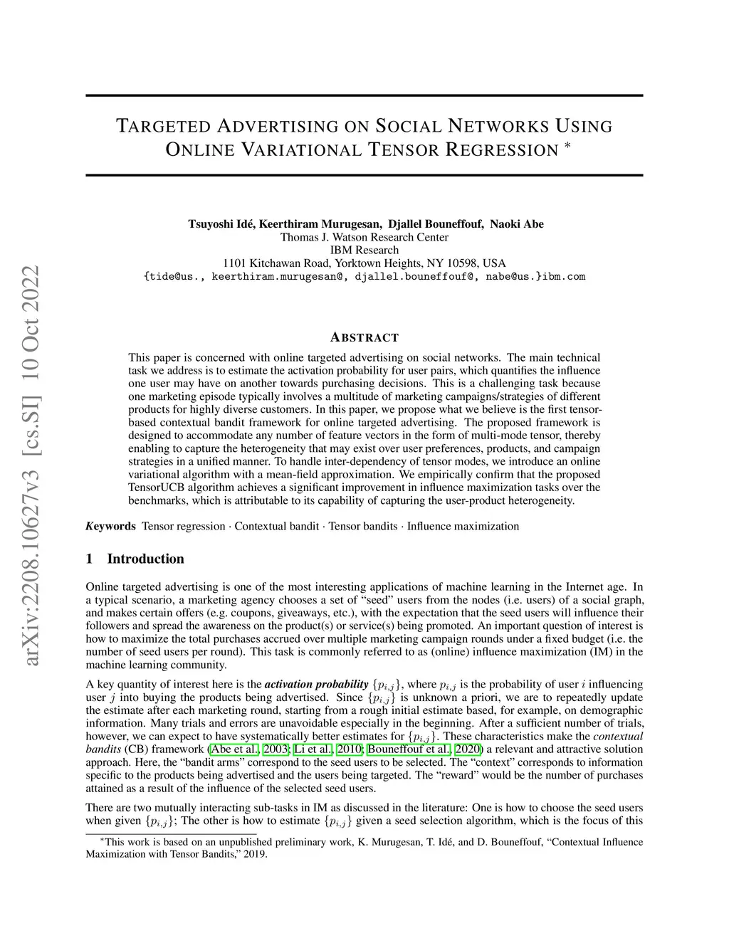Targeted Advertising on Social Networks Using Online Variational Tensor