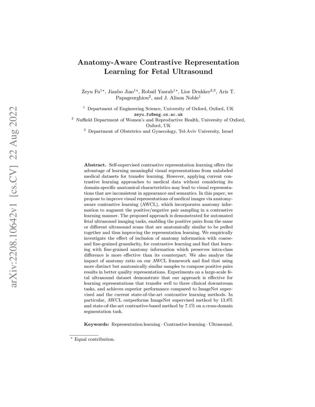 Anatomy-Aware Contrastive Representation Learning for Fetal Ultrasound