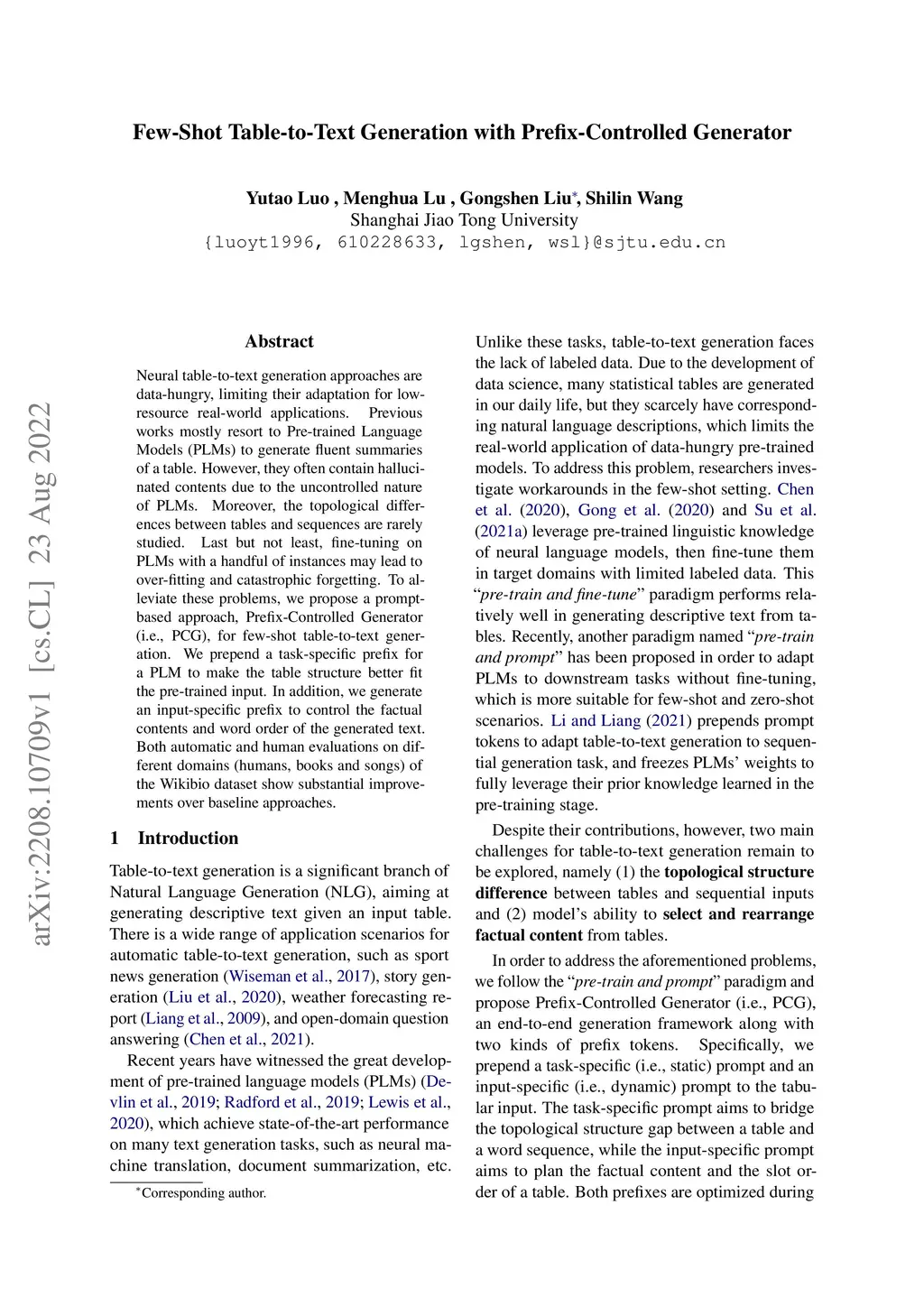 Few-Shot Table-to-Text Generation with Prefix-Controlled Generator
