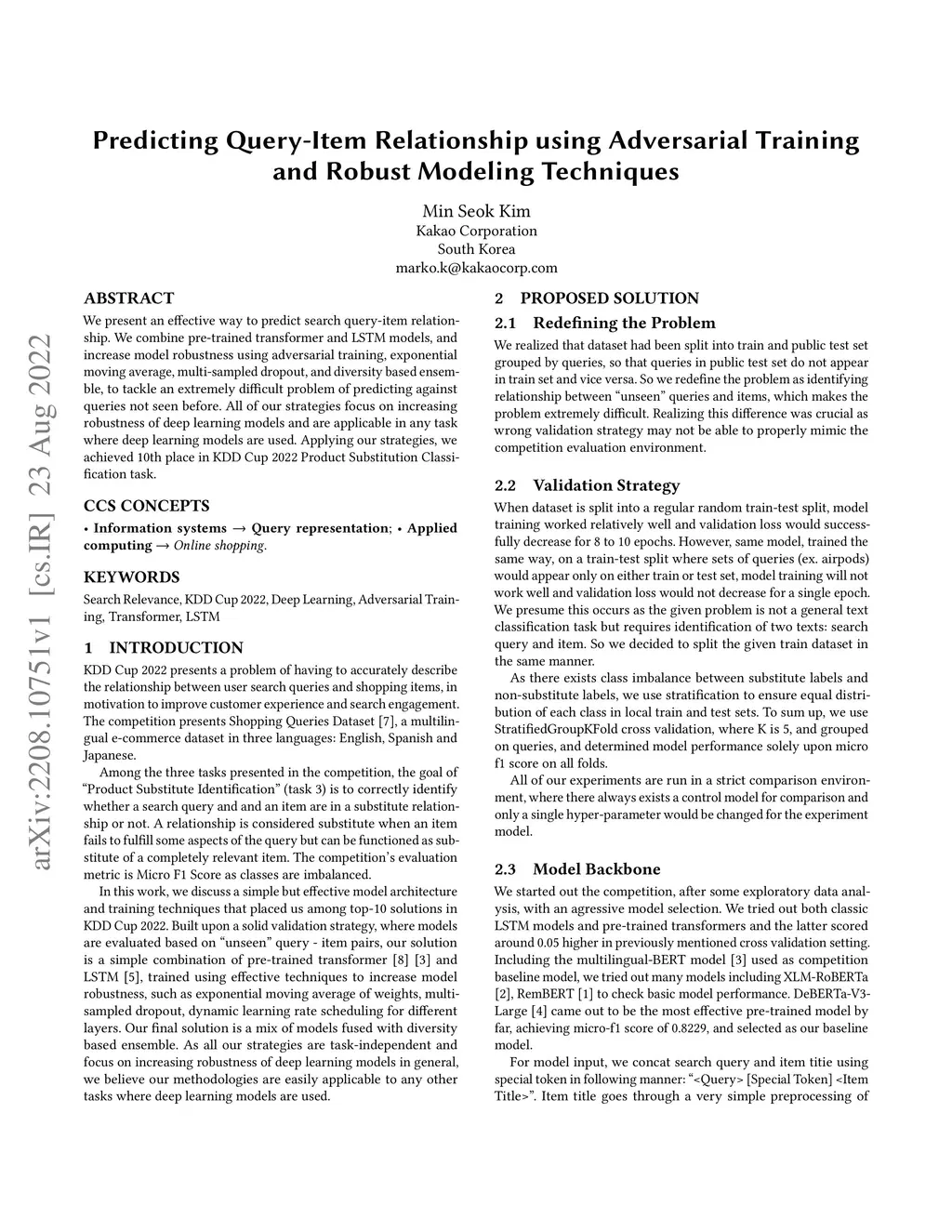 We present an effective way to predict search query-item relationship. We combine pre-trained transformer and LSTM models, and increase model robustness using adversarial training, exponential moving average, multi-sampled dropout, and diversity based ensemble, to tackle an extremely difficult problem of predicting against queries not seen before. All of our strategies focus on increasing robustness of deep learning models and are applicable in any task where deep learning models are used. Applying our strategies, we achieved 10th place in KDD Cup 2022 Product Substitution Classification task.