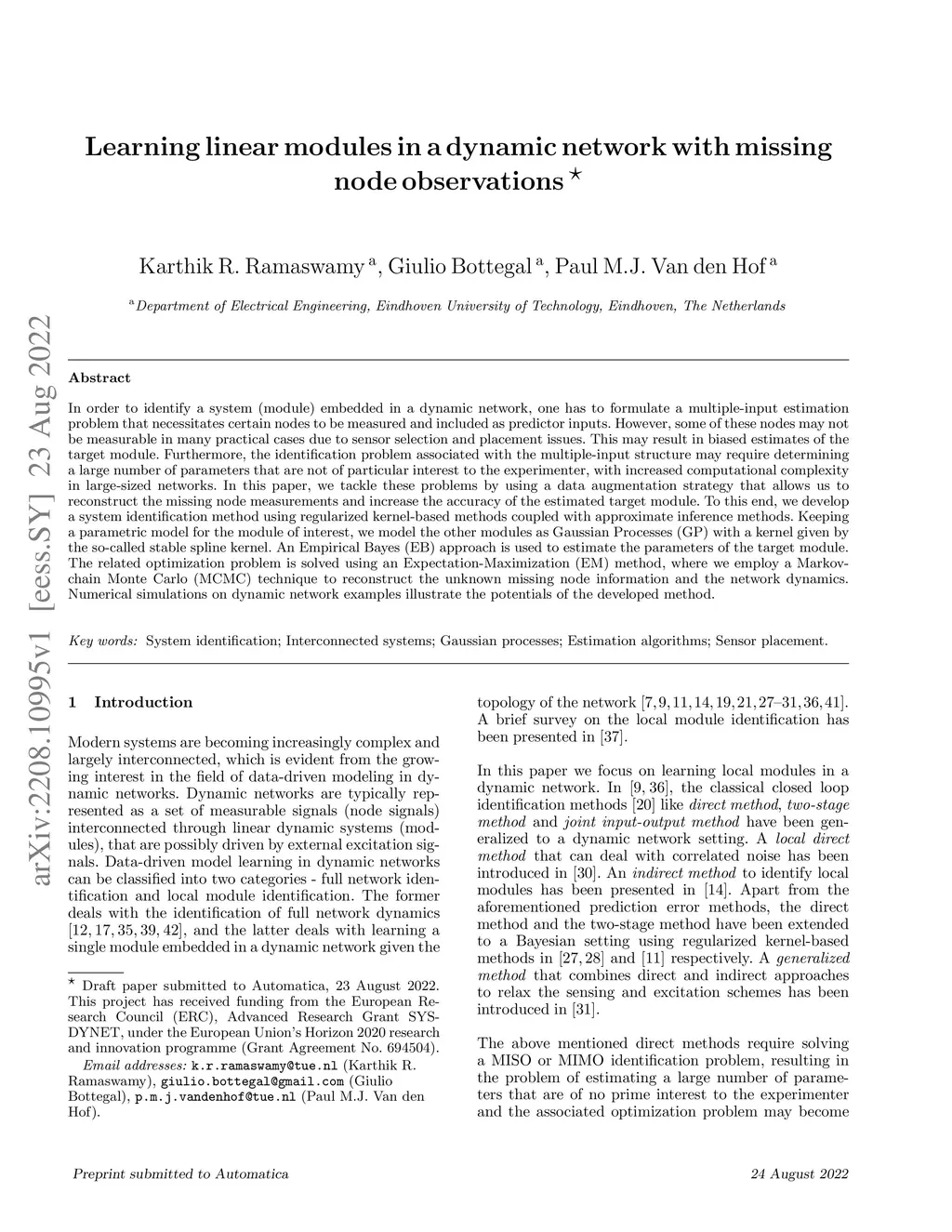 In order to identify a system (module) embedded in a dynamic network, one has to formulate a multiple-input estimation problem that necessitates certain nodes to be measured and included as predictor inputs. However, some of these nodes may not be measurable in many practical cases due to sensor selection and placement issues. This may result in biased estimates of the target module. Furthermore, the identification problem associated with the multiple-input structure may require determining a large number of parameters that are not of particular interest to the experimenter, with increased computational complexity in large-sized networks. In this paper, we tackle these problems by using a data augmentation strategy that allows us to reconstruct the missing node measurements and increase the accuracy of the estimated target module. To this end, we develop a system identification method using regularized kernel-based methods coupled with approximate inference methods. Keeping a parametric model for the module of interest, we model the other modules as Gaussian Processes (GP) with a kernel given by the so-called stable spline kernel. An Empirical Bayes (EB) approach is used to estimate the parameters of the target module. The related optimization problem is solved using an Expectation-Maximization (EM) method, where we employ a Markov-chain Monte Carlo (MCMC) technique to reconstruct the unknown missing node information and the network dynamics. Numerical simulations on dynamic network examples illustrate the potentials of the developed method.