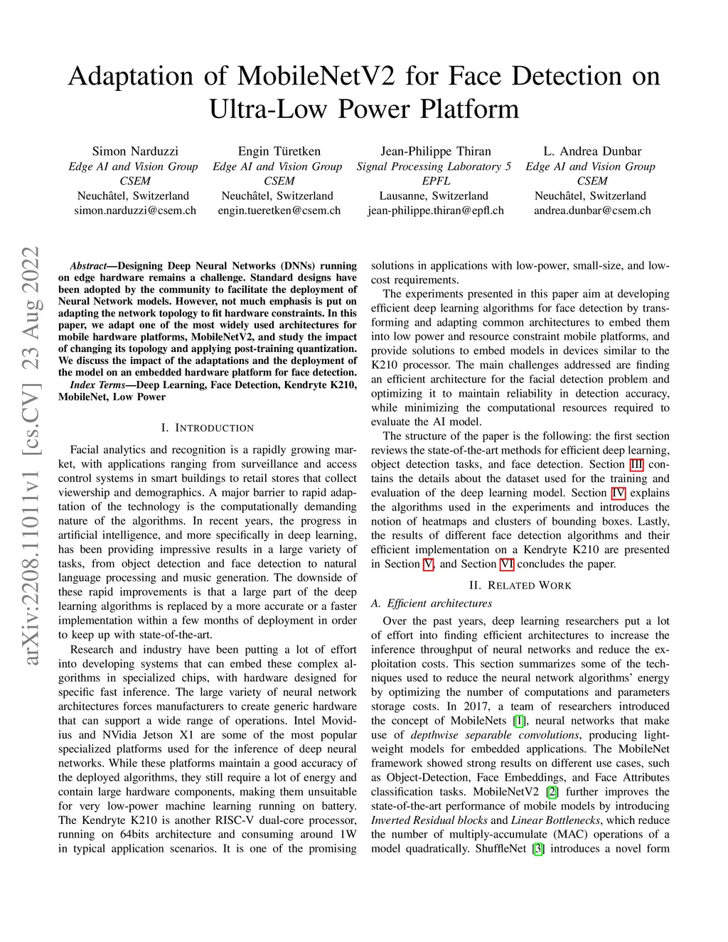 Adaptation of MobileNetV2 for Face Detection on Ultra-Low Power Platform