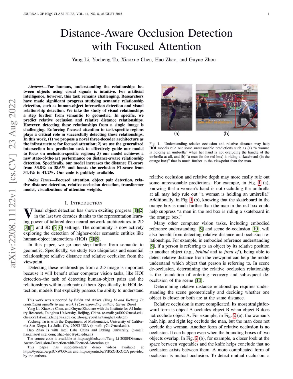 Distance-Aware Occlusion Detection with Focused Attention