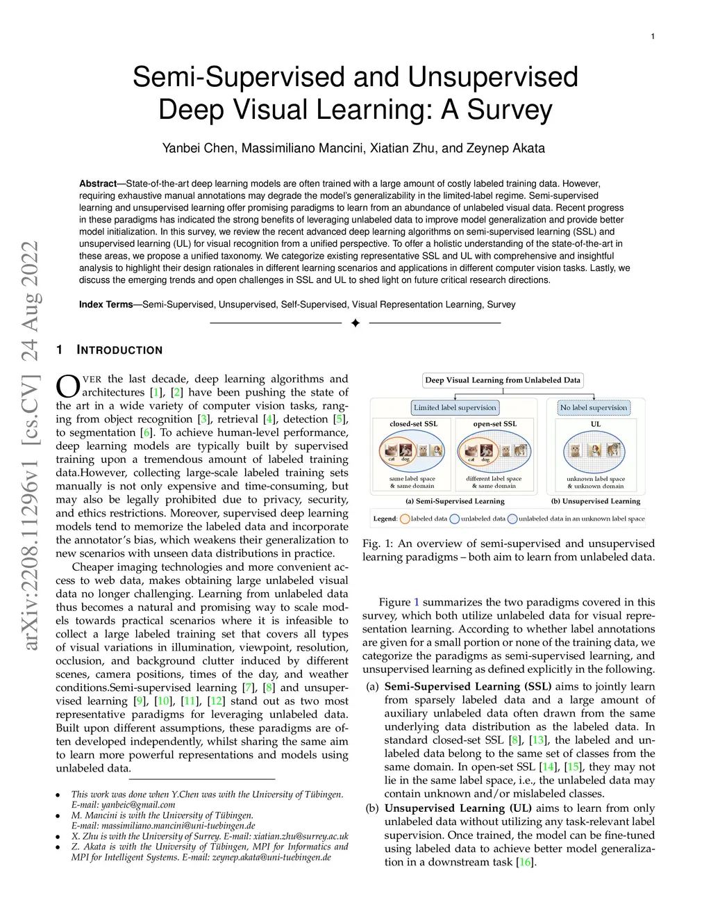 Semi-Supervised and Unsupervised Deep Visual Learning: A Survey