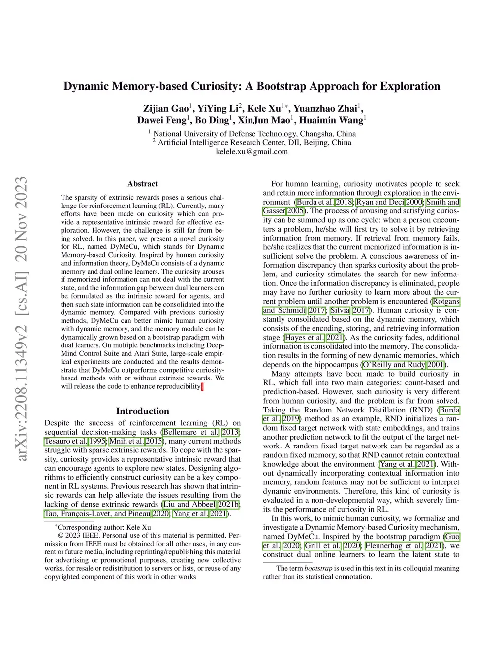 Dynamic Memory-based Curiosity: A Bootstrap Approach for Exploration