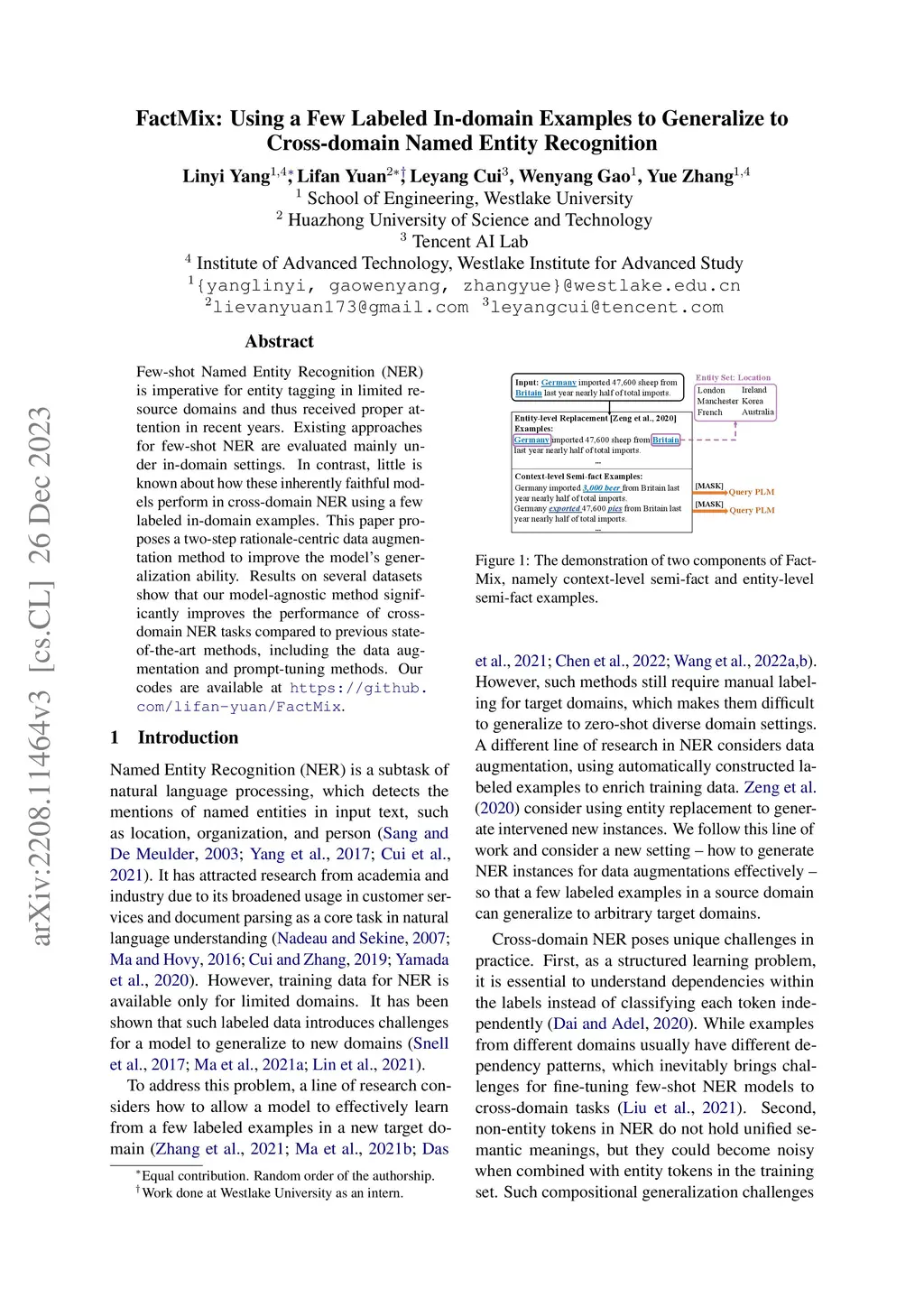 FactMix: Using a Few Labeled In-domain Examples to Generalize to