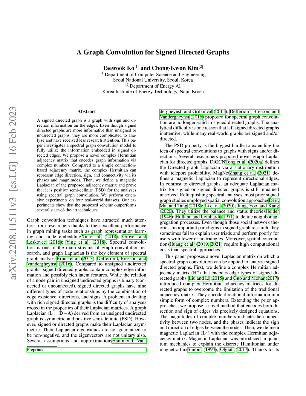 There are several types of graphs according to the nature of the data. Directed graphs have directions of links, and signed graphs have link types such as positive and negative. Signed directed graphs are the most complex and informative that have both. Graph convolutions for signed directed graphs have not been delivered much yet. Though many graph convolution studies have been provided, most are designed for undirected or unsigned. In this paper, we investigate a spectral graph convolution network for signed directed graphs. We propose a novel complex Hermitian adjacency matrix that encodes graph information via complex numbers. The complex numbers represent link direction, sign, and connectivity via the phases and magnitudes. Then, we define a magnetic Laplacian with the Hermitian matrix and prove its positive semidefinite property. Finally, we introduce Signed Directed Graph Convolution Network(SD-GCN). To the best of our knowledge, it is the first spectral convolution for graphs with signs. Moreover, unlike the existing convolutions designed for a specific graph type, the proposed model has generality that can be applied to any graphs, including undirected, directed, or signed. The performance of the proposed model was evaluated with four real-world graphs. It outperforms all the other state-of-the-art graph convolutions in the task of link sign prediction.