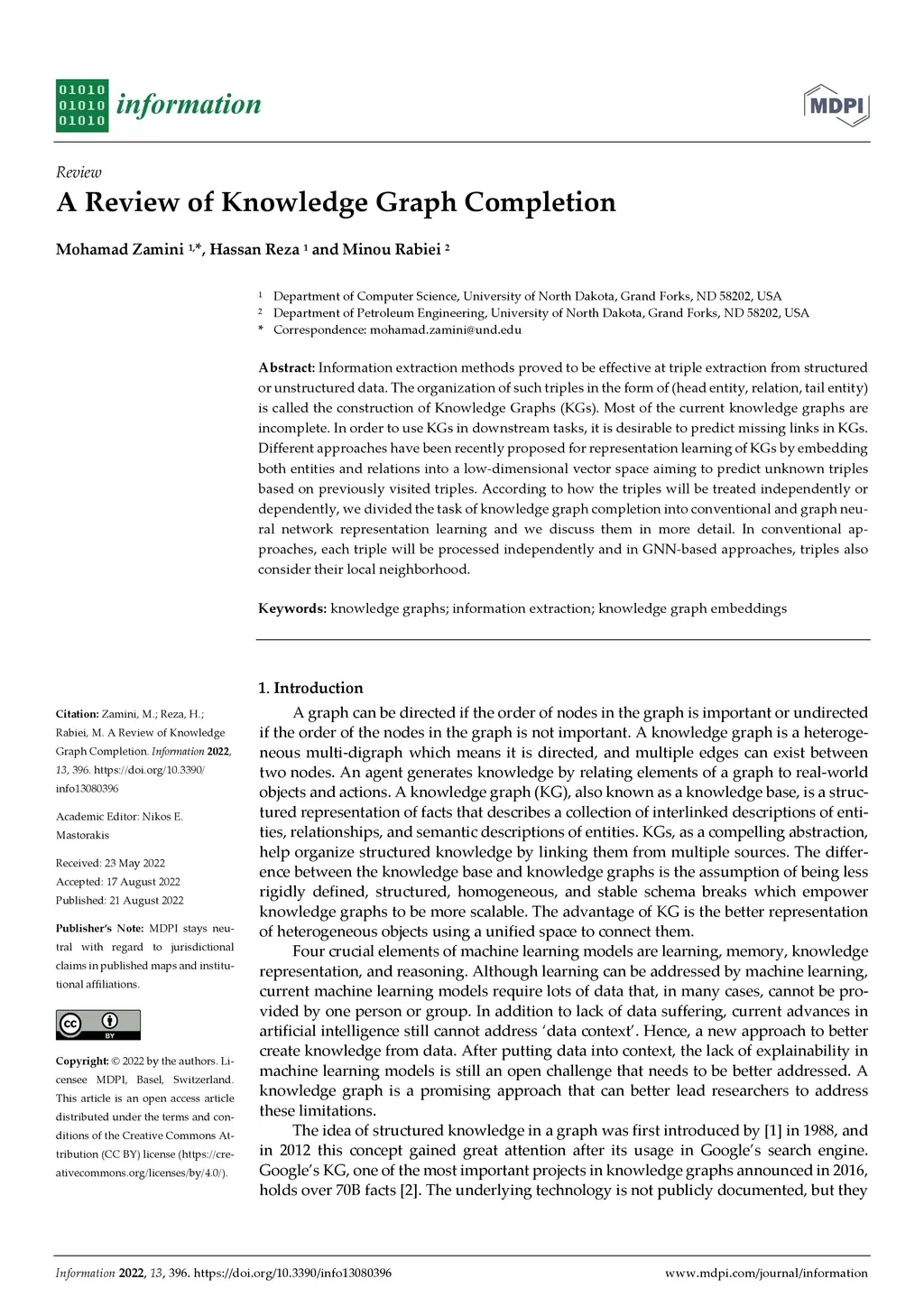 A Review of Knowledge Graph Completion