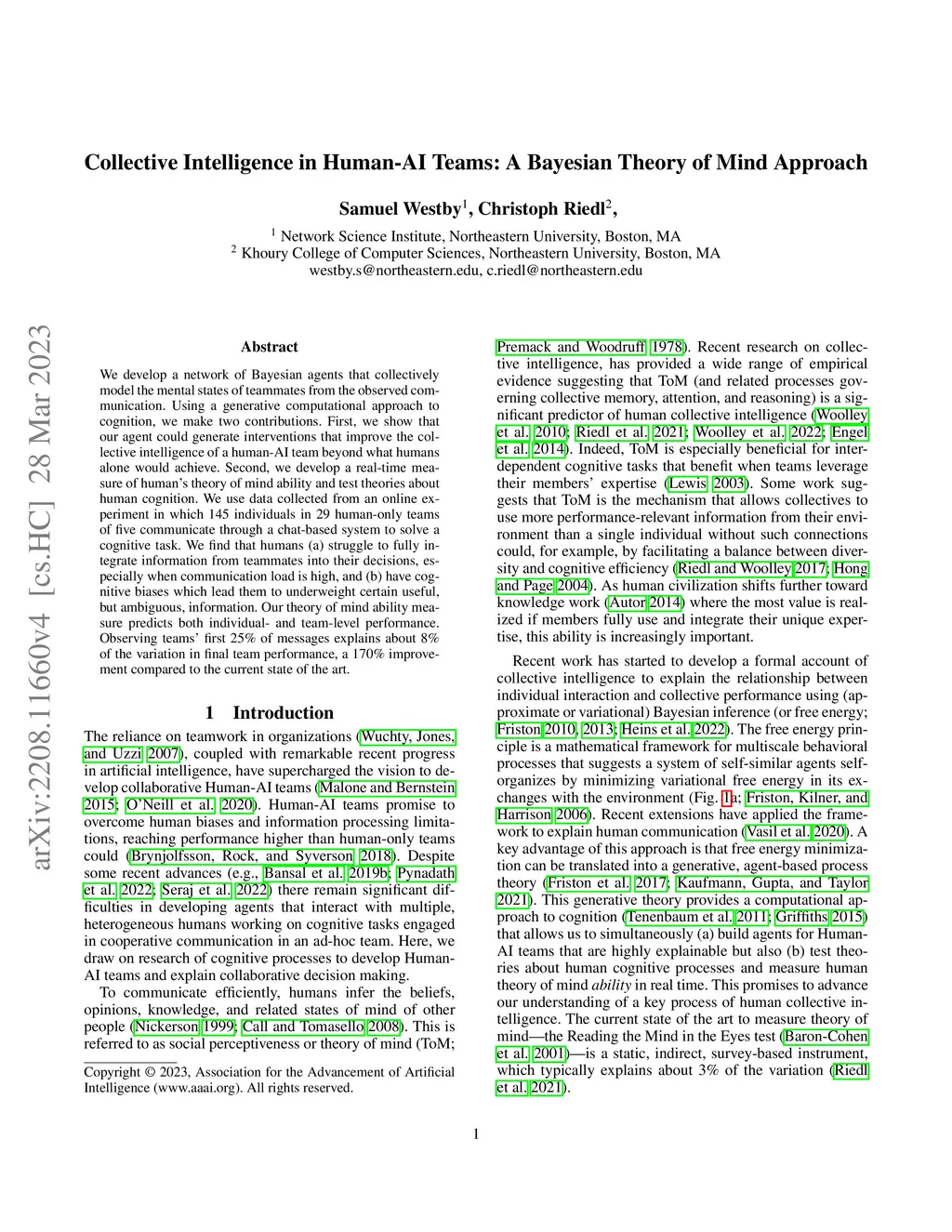 Collective Intelligence in Human-AI Teams: A Bayesian Theory of Mind