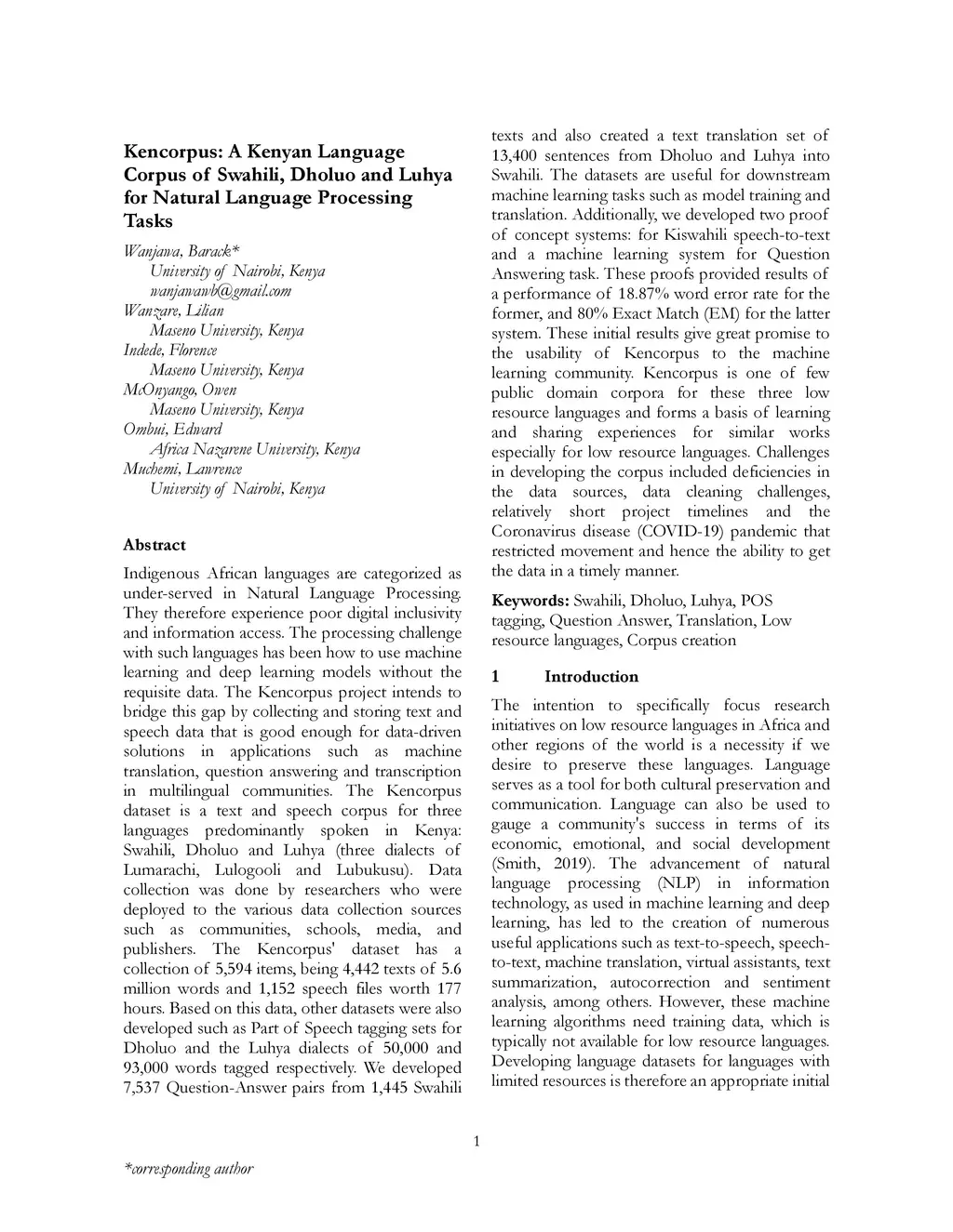 Kencorpus: A Kenyan Language Corpus of Swahili, Dholuo and Luhya for