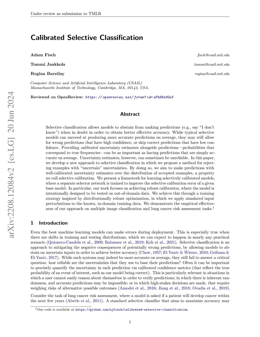 Calibrated Selective Classification