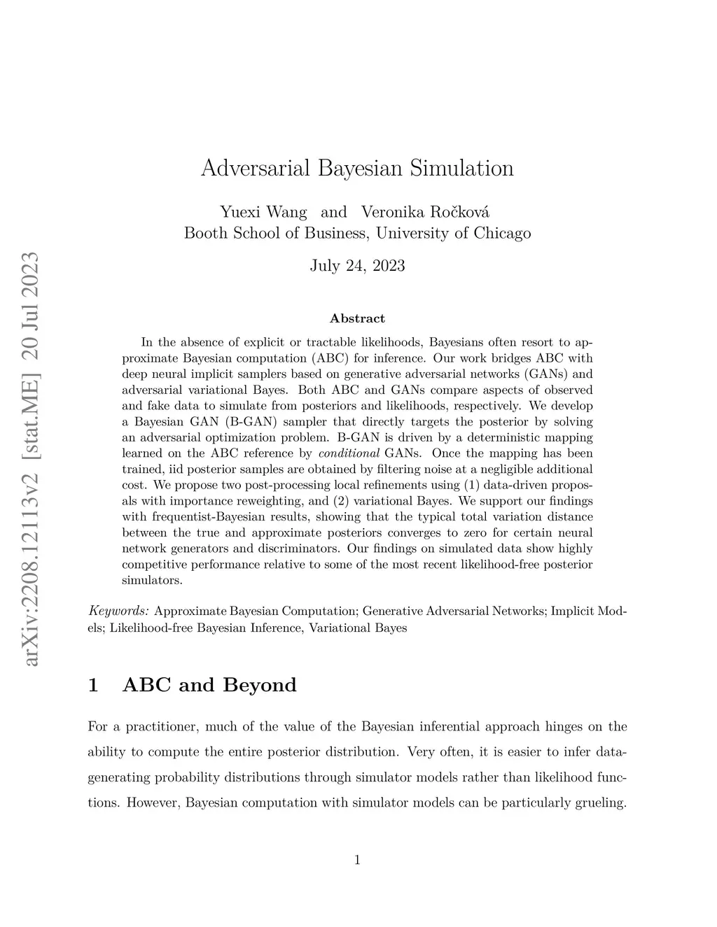 In the absence of explicit or tractable likelihoods, Bayesians often resort to approximate Bayesian computation (ABC) for inference. Our work bridges ABC with deep neural implicit samplers based on generative adversarial networks (GANs) and adversarial variational Bayes. Both ABC and GANs compare aspects of observed and fake data to simulate from posteriors and likelihoods, respectively. We develop a Bayesian GAN (B-GAN) sampler that directly targets the posterior by solving an adversarial optimization problem. B-GAN is driven by a deterministic mapping learned on the ABC reference by conditional GANs. Once the mapping has been trained, iid posterior samples are obtained by filtering noise at a negligible additional cost. We propose two post-processing local refinements using (1) data-driven proposals with importance reweighting, and (2) variational Bayes. We support our findings with frequentist-Bayesian results, showing that the typical total variation distance between the true and approximate posteriors converges to zero for certain neural network generators and discriminators. Our findings on simulated data show highly competitive performance relative to some of the most recent likelihood-free posterior simulators.