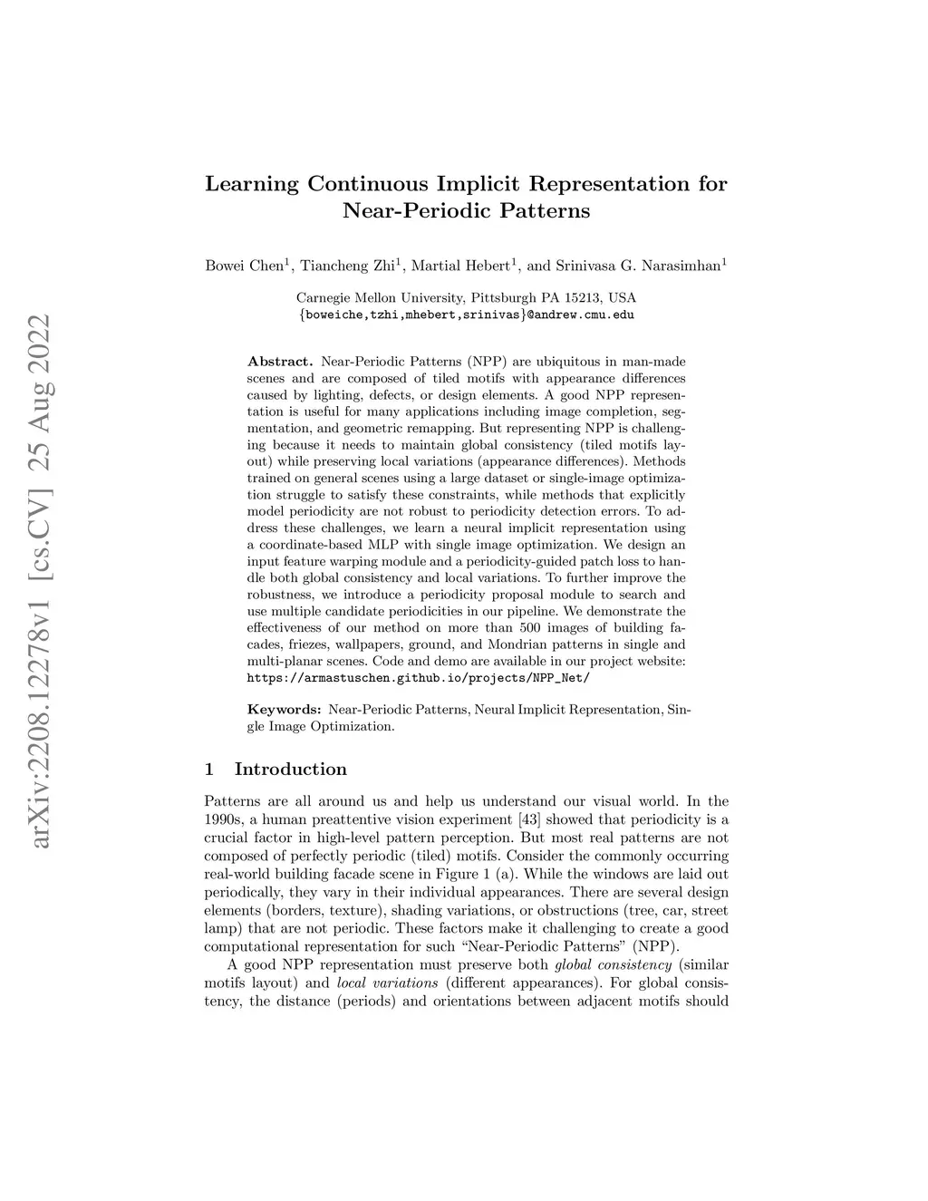 Learning Continuous Implicit Representation for Near-Periodic Patterns