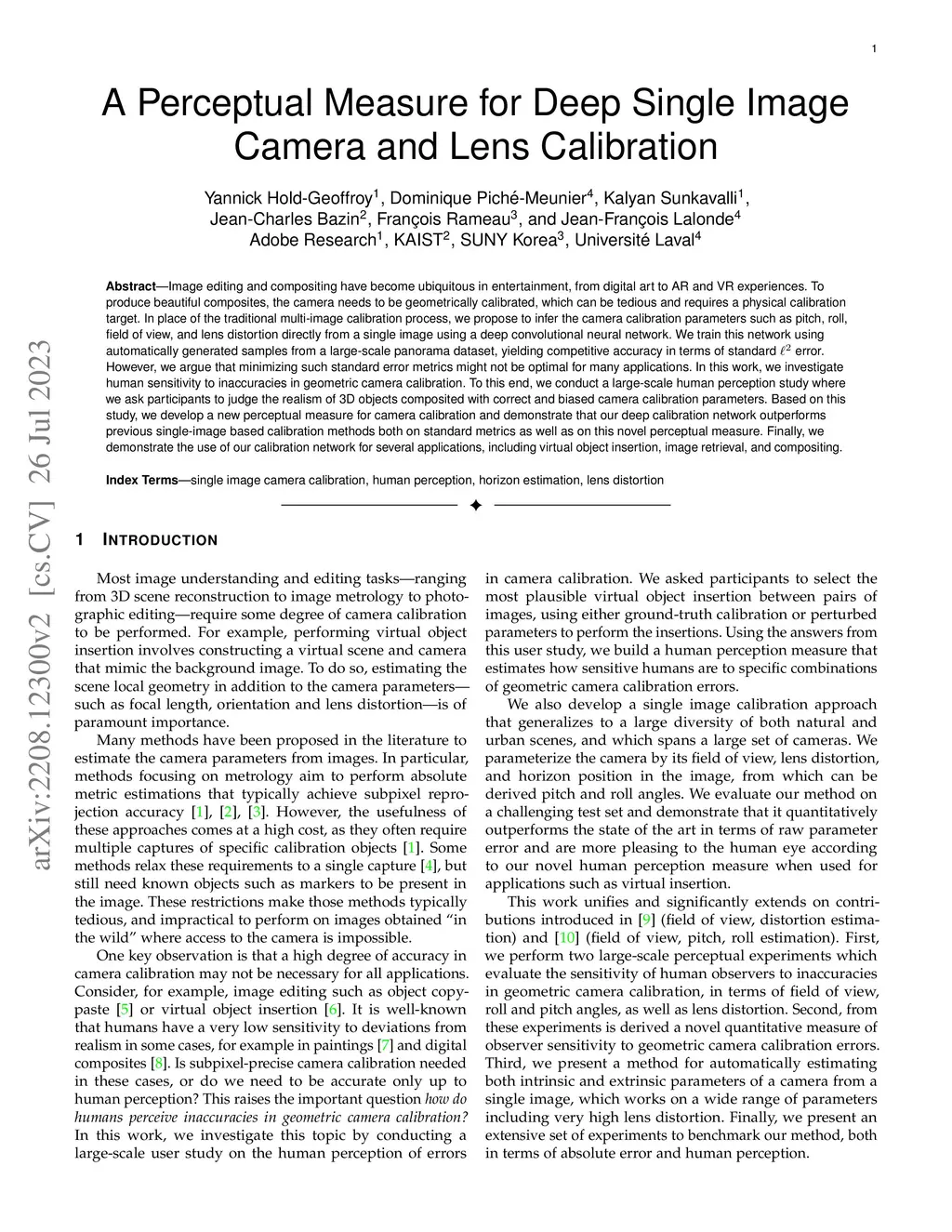 A Deep Perceptual Measure for Lens and Camera Calibration