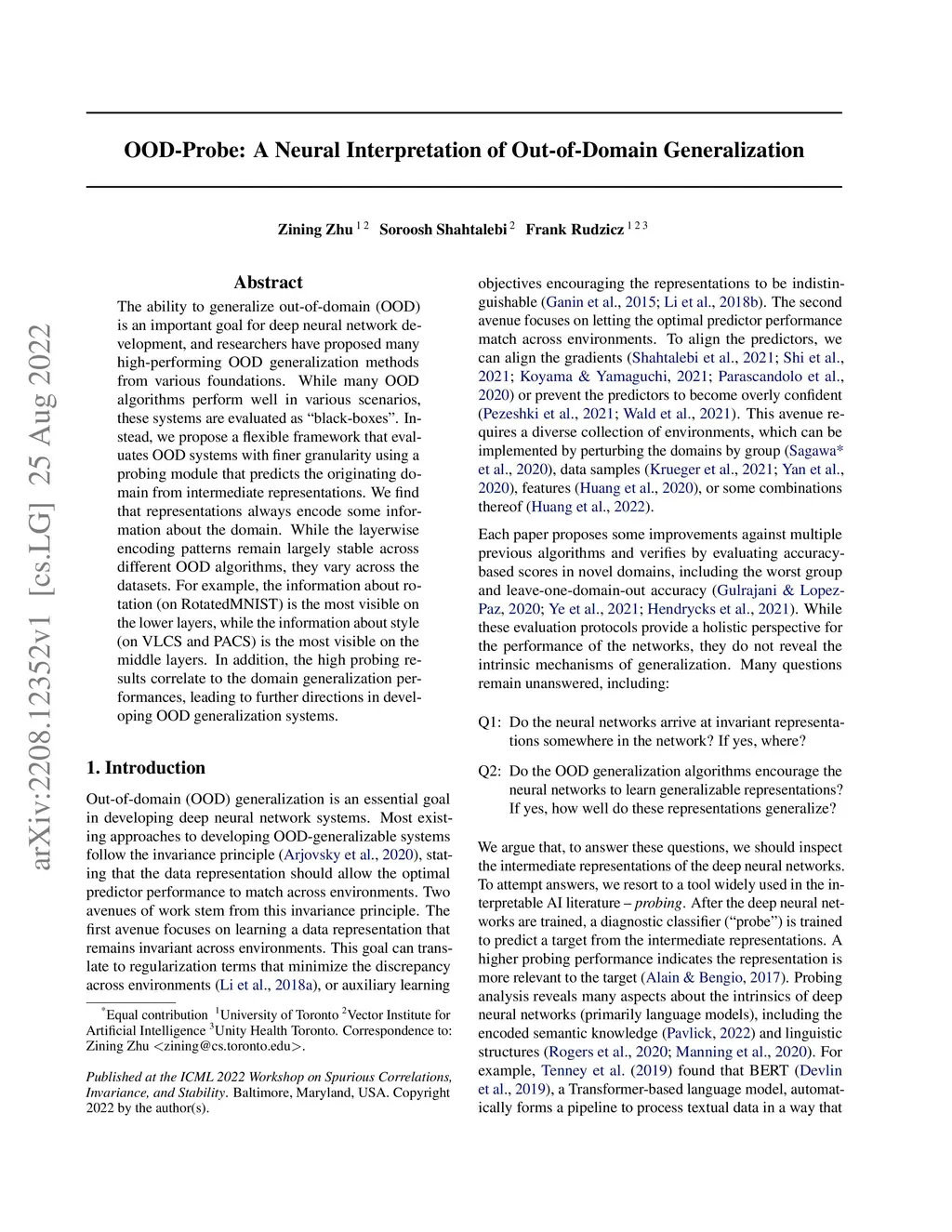 OOD-Probe: A Neural Interpretation of Out-of-Domain Generalization