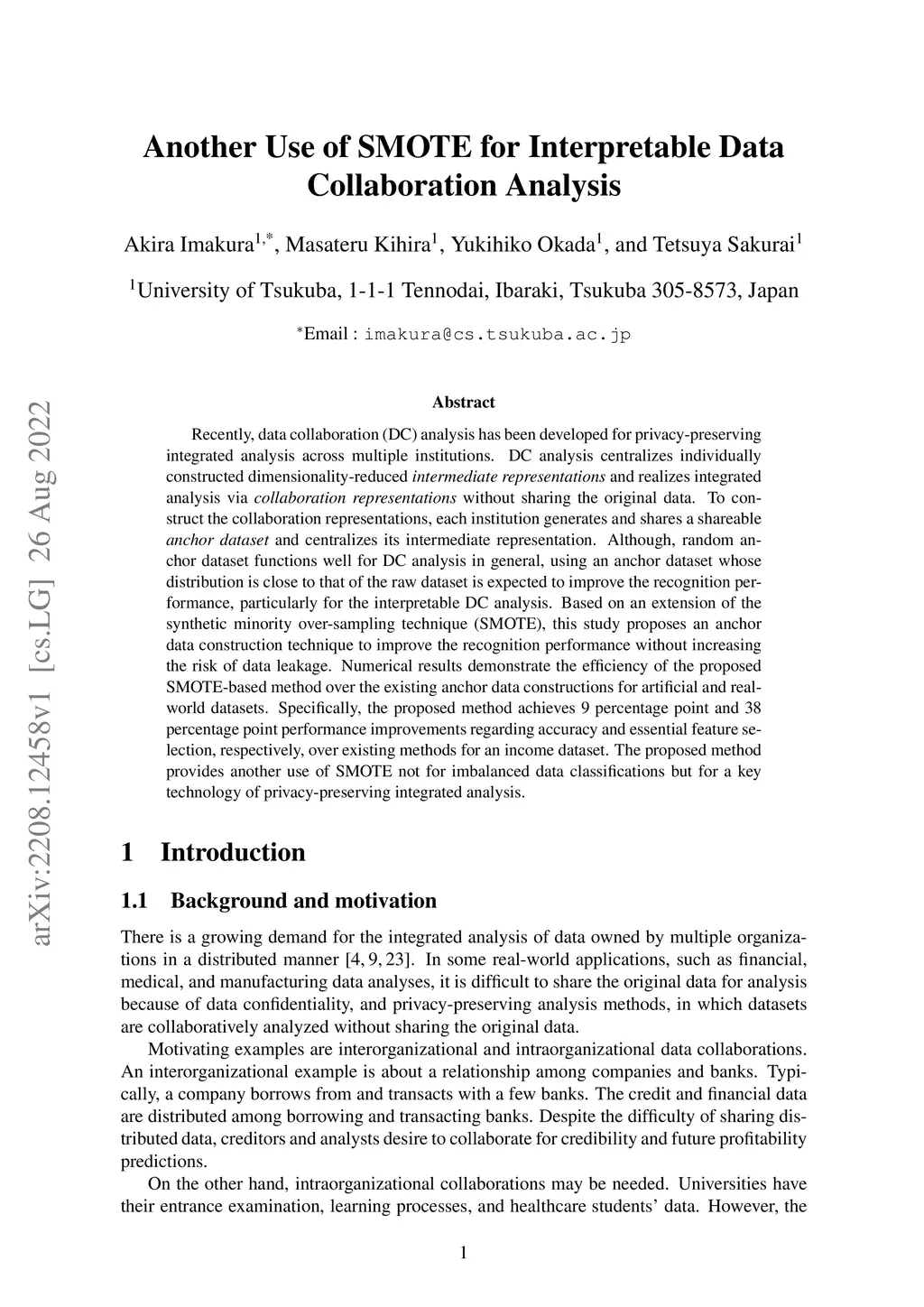 Another Use of SMOTE for Interpretable Data Collaboration Analysis