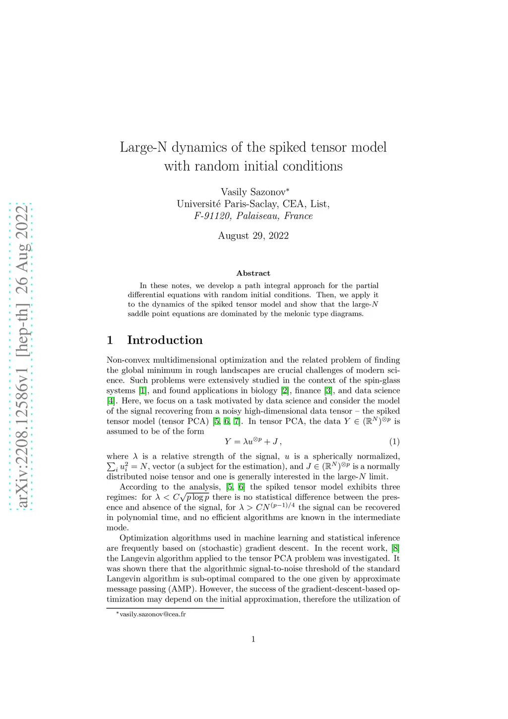 In these notes, we develop a path integral approach for the partial differential equations with random initial conditions. Then, we apply it to the dynamics of the spiked tensor model and show that the large- saddle point equations are dominated by the melonic type diagrams.