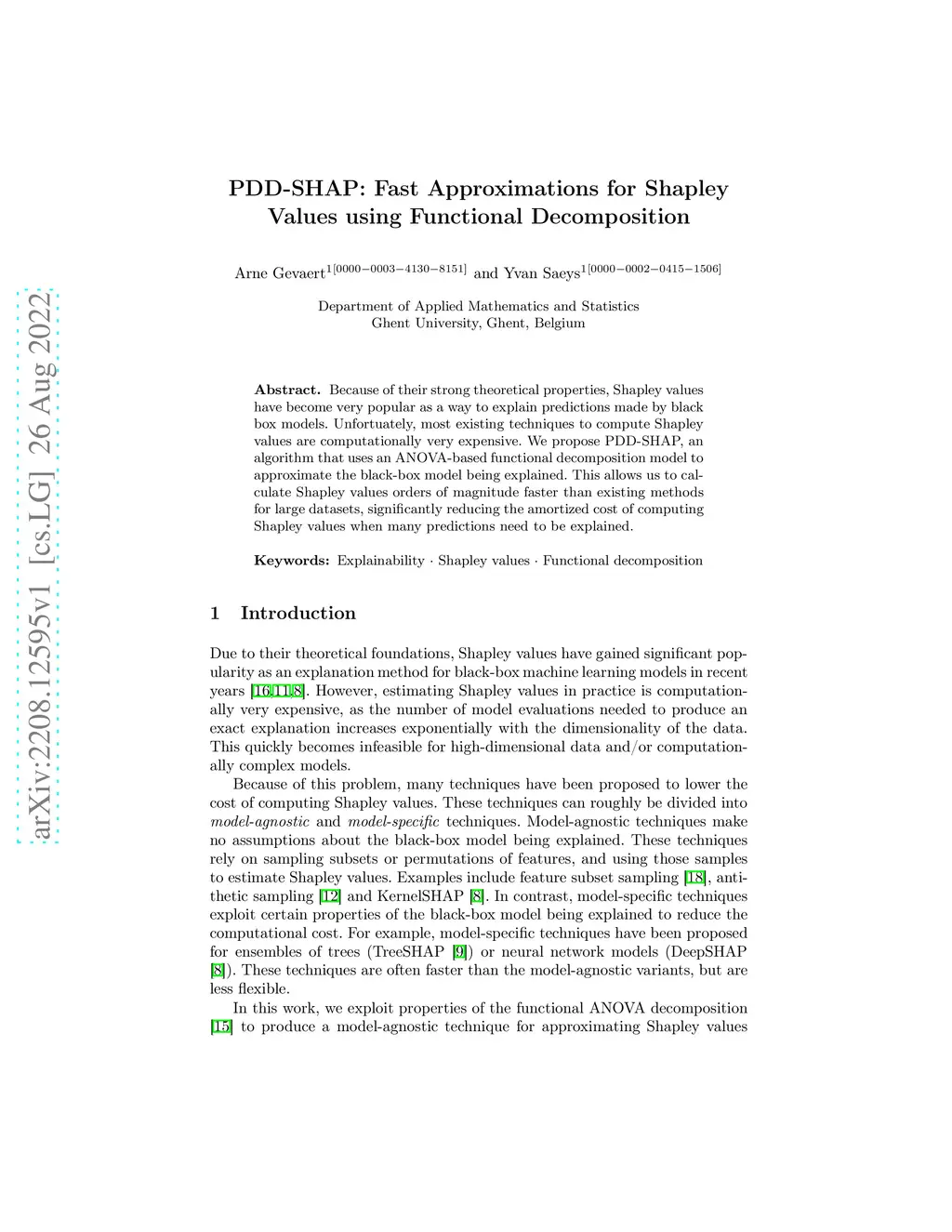 Because of their strong theoretical properties, Shapley values have become very popular as a way to explain predictions made by black box models. Unfortuately, most existing techniques to compute Shapley values are computationally very expensive. We propose PDD-SHAP, an algorithm that uses an ANOVA-based functional decomposition model to approximate the black-box model being explained. This allows us to calculate Shapley values orders of magnitude faster than existing methods for large datasets, significantly reducing the amortized cost of computing Shapley values when many predictions need to be explained.