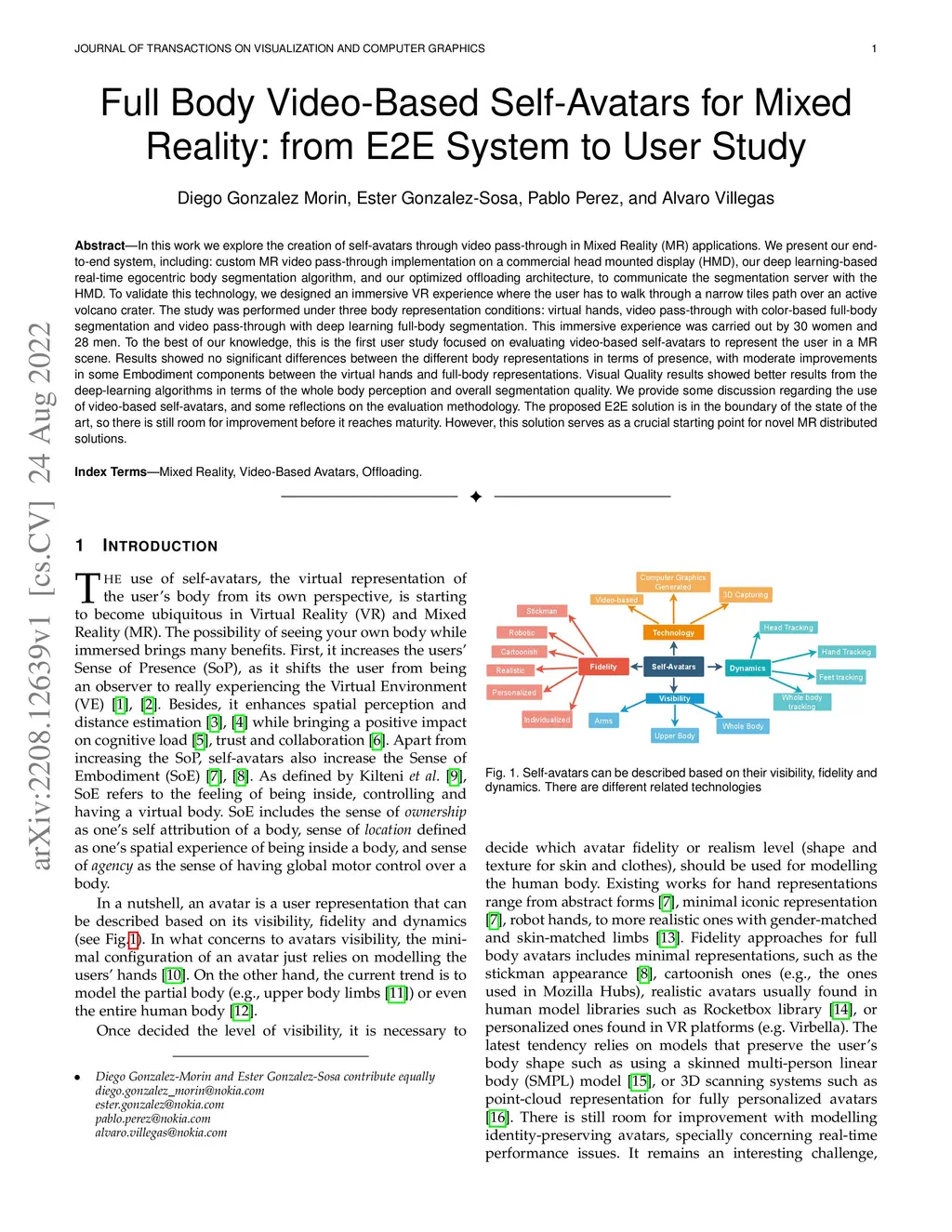 Full Body Video-Based Self-Avatars for Mixed Reality: from E2E System to