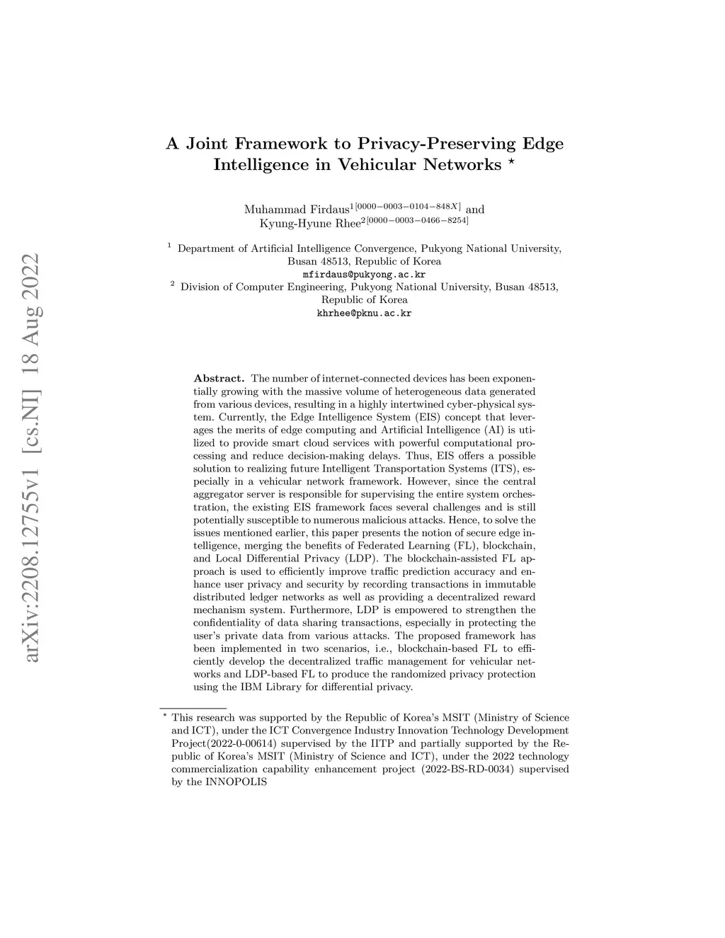 A Joint Framework to Privacy-Preserving Edge Intelligence in Vehicular
