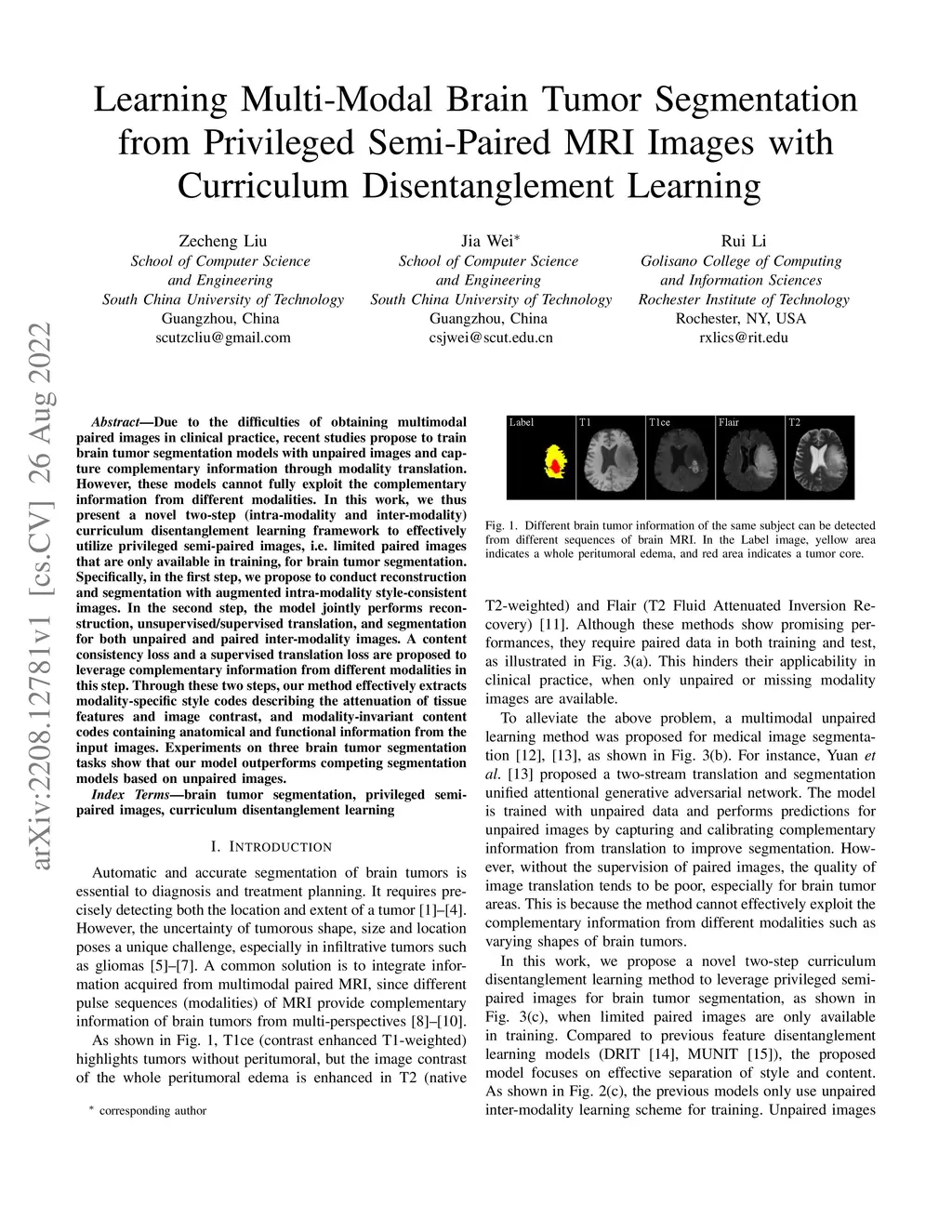 Semi-Paired MRI Images with Curriculum Disentanglement Learning
