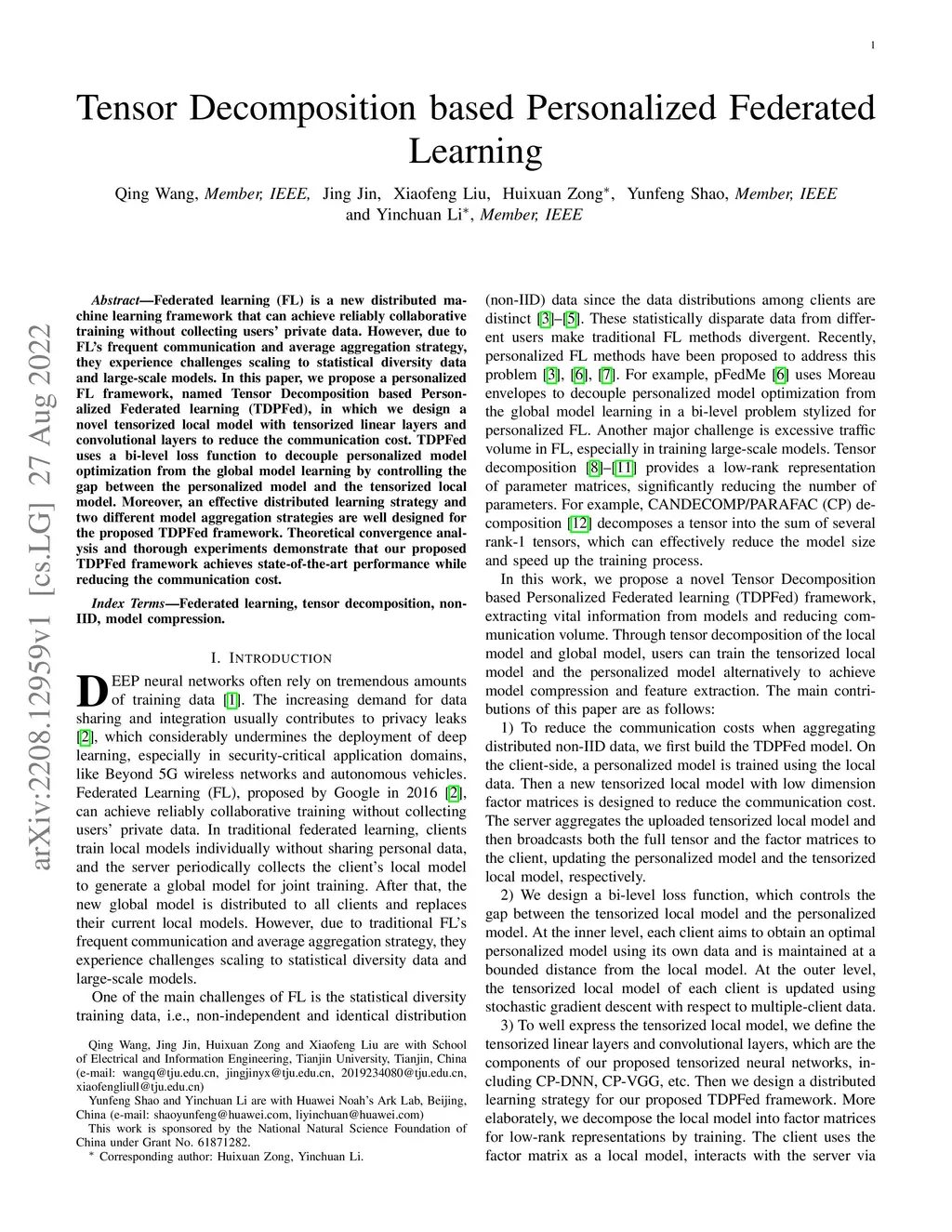 Tensor Decomposition based Personalized Federated Learning