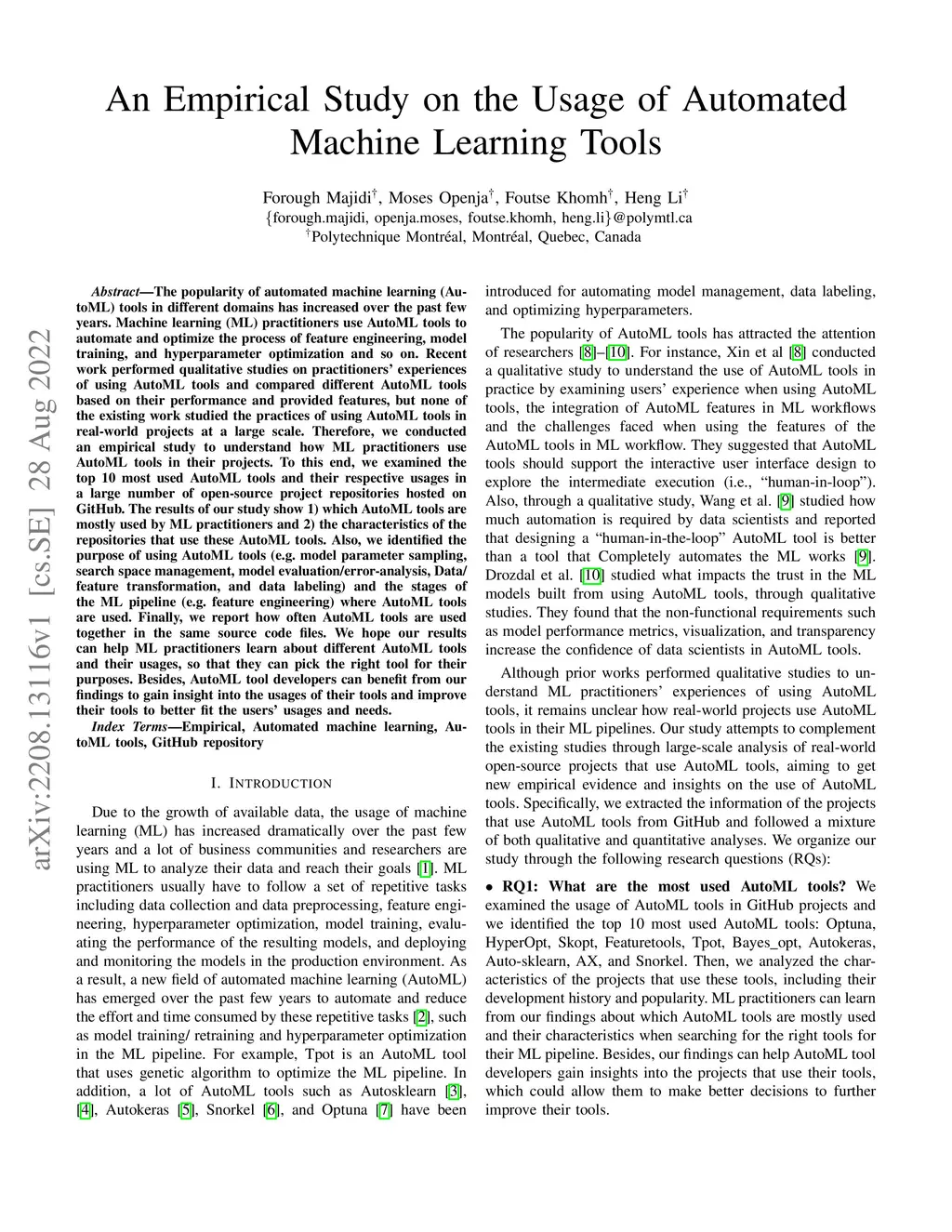 The popularity of automated machine learning (AutoML) tools in different domains has increased over the past few years. Machine learning (ML) practitioners use AutoML tools to automate and optimize the process of feature engineering, model training, and hyperparameter optimization and so on. Recent work performed qualitative studies on practitioners' experiences of using AutoML tools and compared different AutoML tools based on their performance and provided features, but none of the existing work studied the practices of using AutoML tools in real-world projects at a large scale. Therefore, we conducted an empirical study to understand how ML practitioners use AutoML tools in their projects. To this end, we examined the top 10 most used AutoML tools and their respective usages in a large number of open-source project repositories hosted on GitHub. The results of our study show 1) which AutoML tools are mostly used by ML practitioners and 2) the characteristics of the repositories that use these AutoML tools. Also, we identified the purpose of using AutoML tools (e.g. model parameter sampling, search space management, model evaluation/error-analysis, Data/ feature transformation, and data labeling) and the stages of the ML pipeline (e.g. feature engineering) where AutoML tools are used. Finally, we report how often AutoML tools are used together in the same source code files. We hope our results can help ML practitioners learn about different AutoML tools and their usages, so that they can pick the right tool for their purposes. Besides, AutoML tool developers can benefit from our findings to gain insight into the usages of their tools and improve their tools to better fit the users' usages and needs.