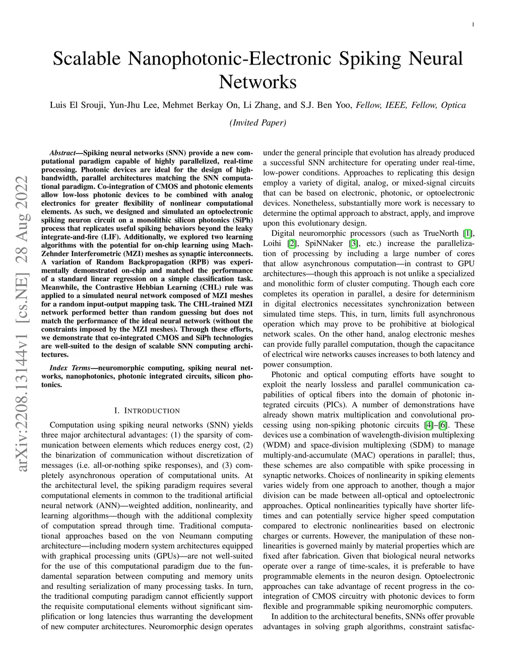 Scalable Nanophotonic-Electronic Spiking Neural Networks