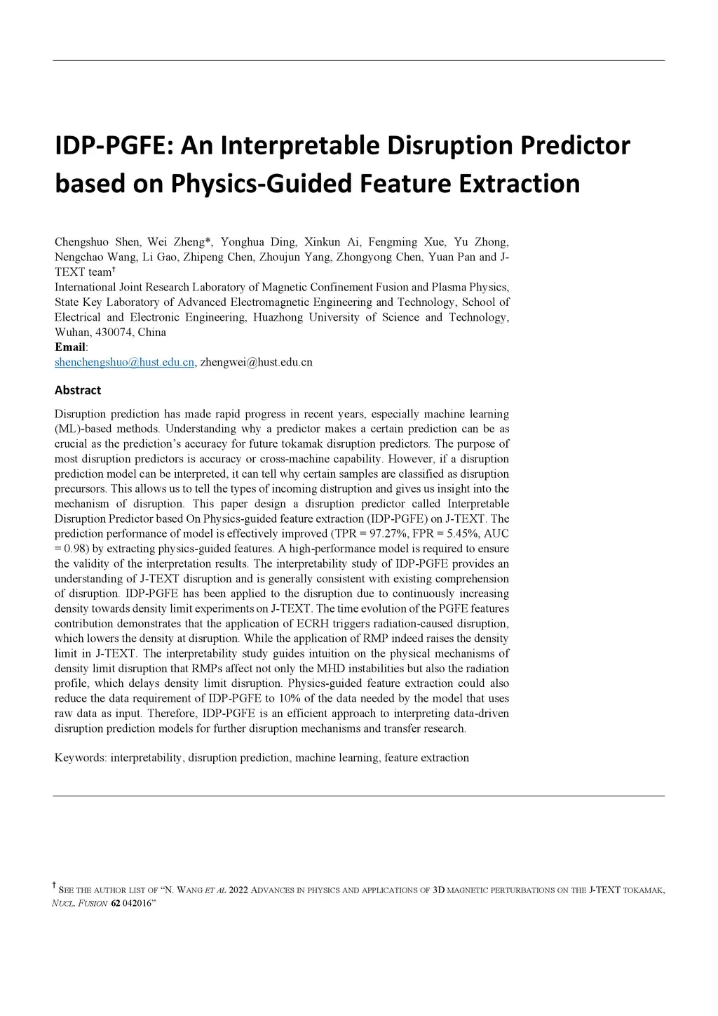 IDP-PGFE: An Interpretable Disruption Predictor based on Physics-Guided