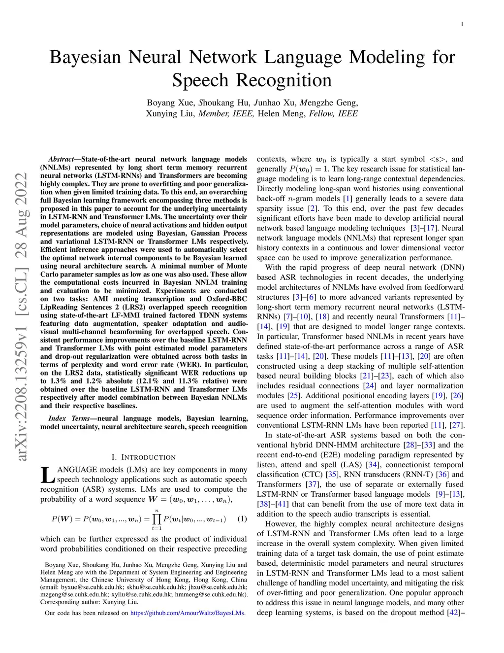 Bayesian Neural Network Language Modeling for Speech Recognition