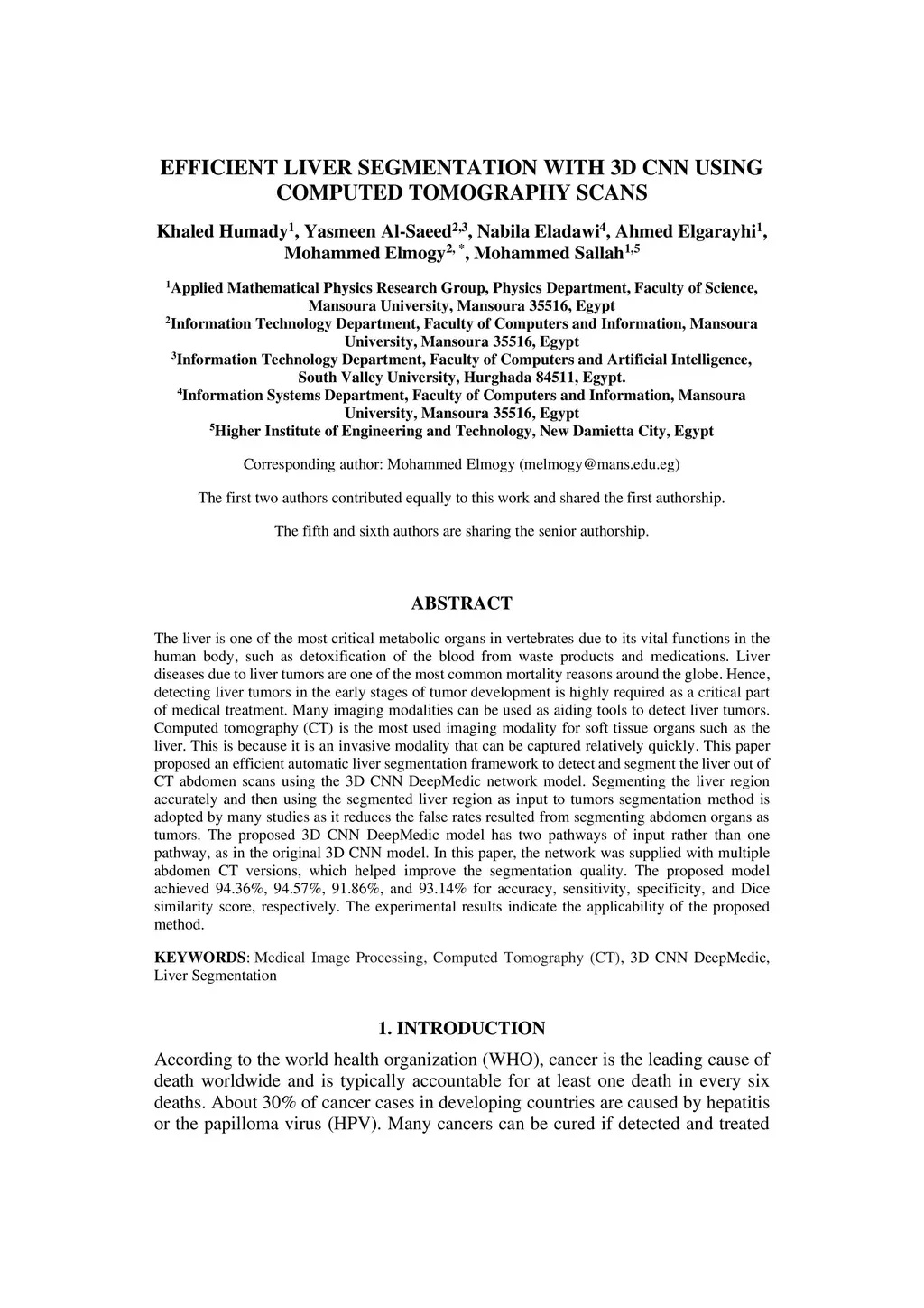 Efficient liver segmentation with 3D CNN using computed tomography scans