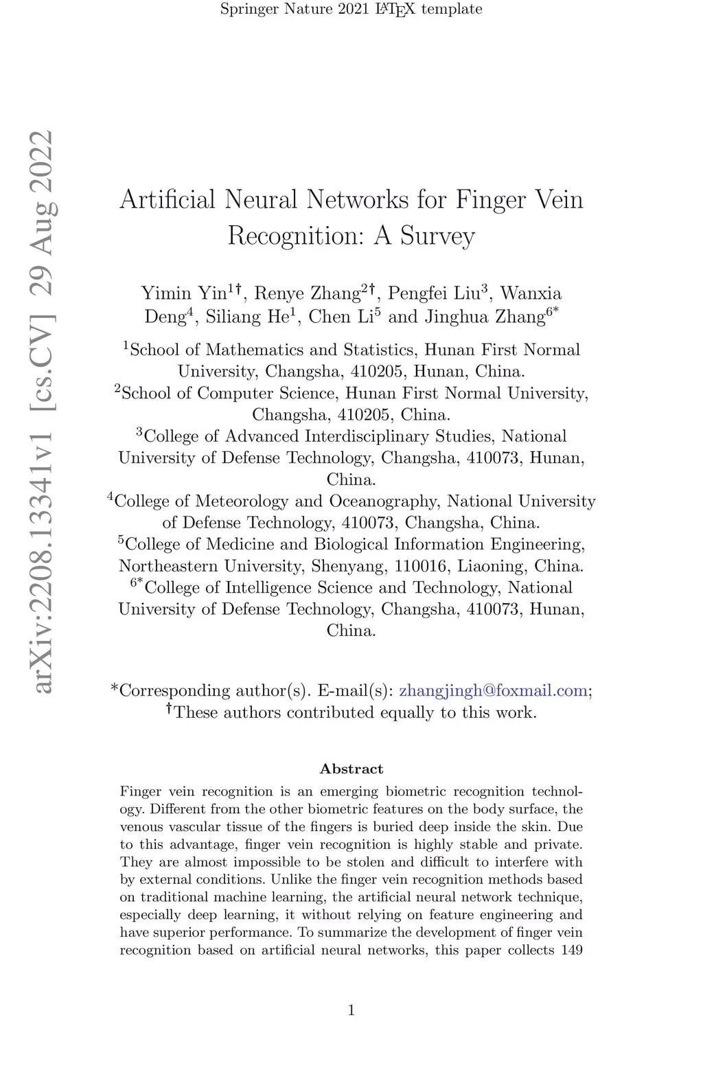 Artificial Neural Networks for Finger Vein Recognition: A Survey