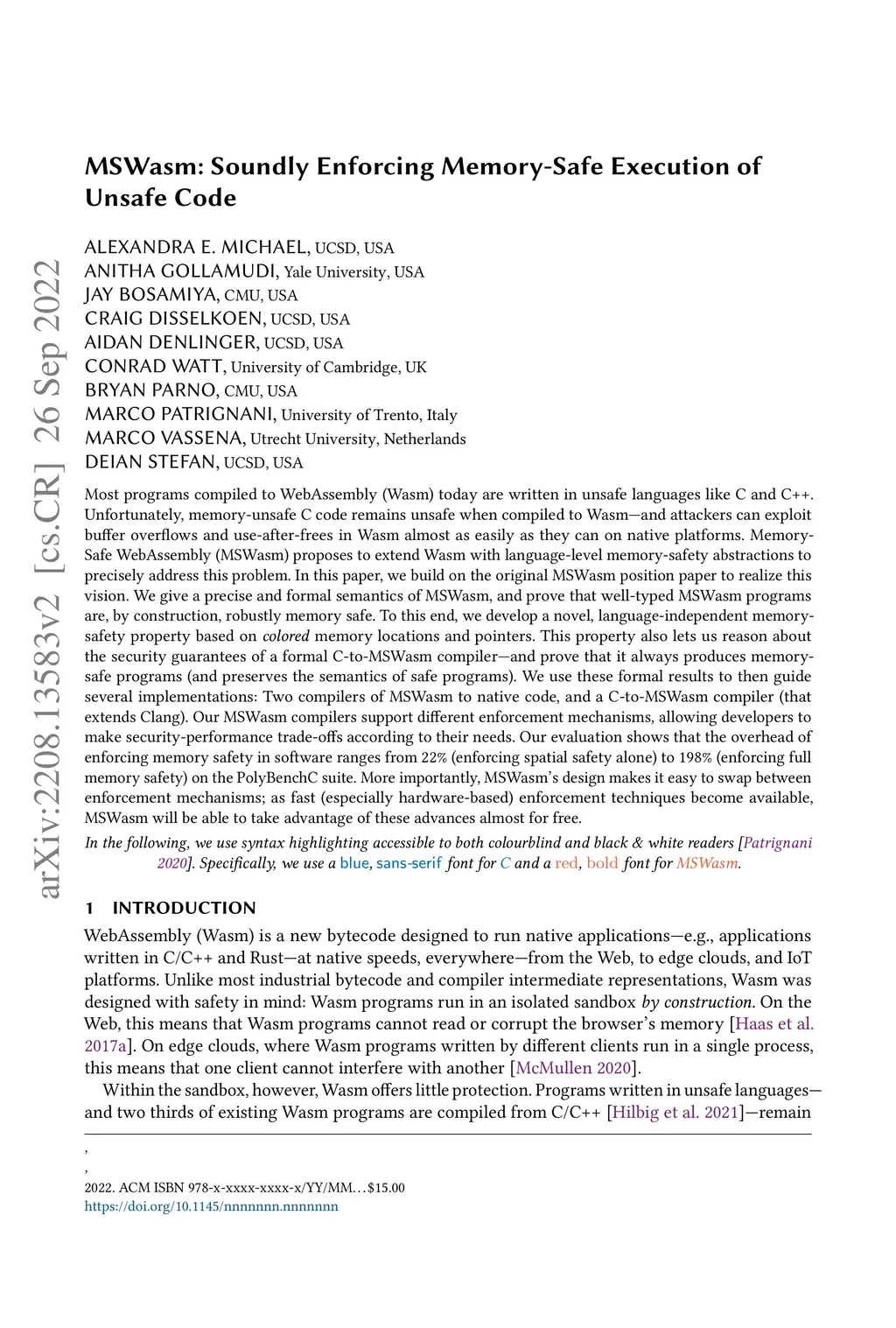 MSWasm: Soundly Enforcing Memory-Safe Execution of Unsafe Code
