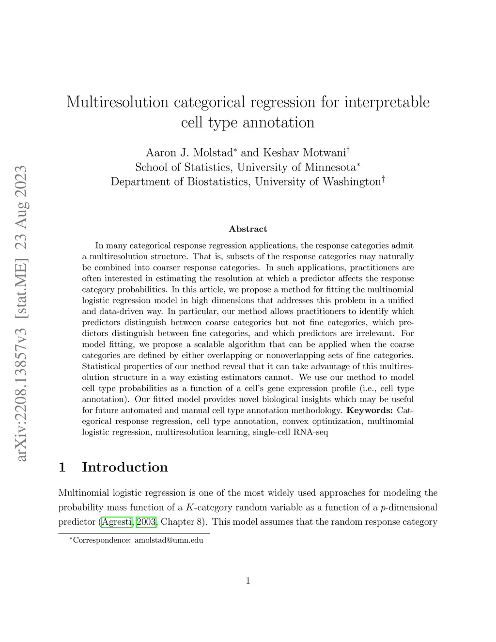 Multiresolution categorical regression for interpretable cell type