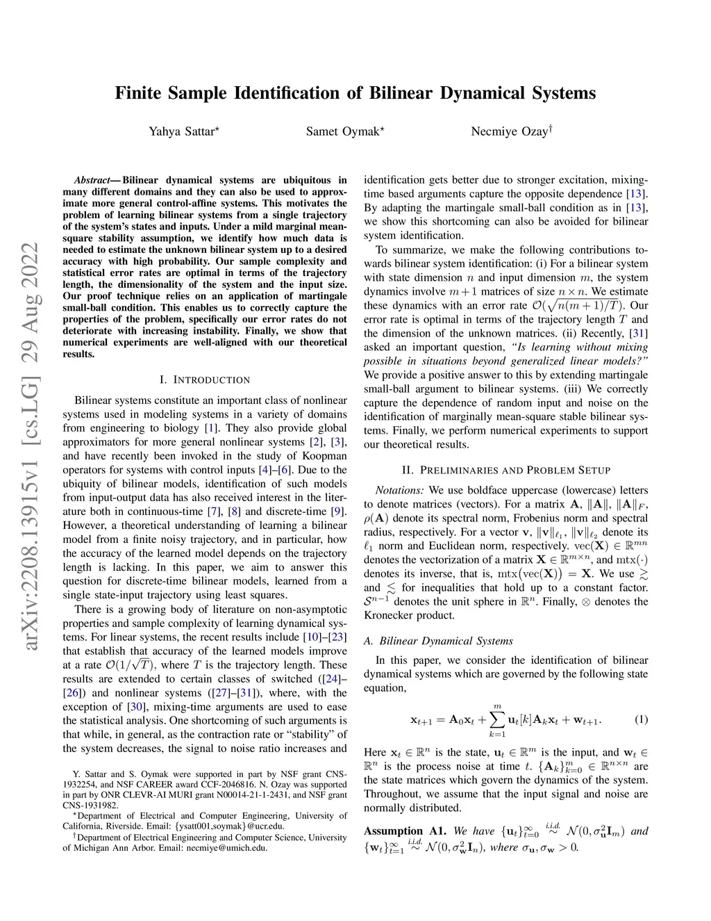 Bilinear dynamical systems are ubiquitous in many different domains and they can also be used to approximate more general control-affine systems. This motivates the problem of learning bilinear systems from a single trajectory of the system's states and inputs. Under a mild marginal mean-square stability assumption, we identify how much data is needed to estimate the unknown bilinear system up to a desired accuracy with high probability. Our sample complexity and statistical error rates are optimal in terms of the trajectory length, the dimensionality of the system and the input size. Our proof technique relies on an application of martingale small-ball condition. This enables us to correctly capture the properties of the problem, specifically our error rates do not deteriorate with increasing instability. Finally, we show that numerical experiments are well-aligned with our theoretical results.