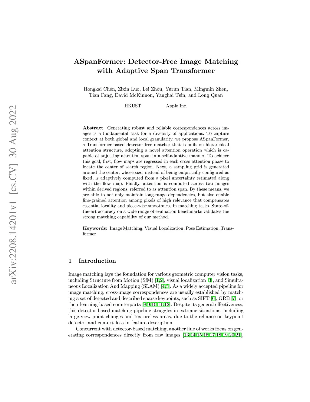 ASpanFormer: Detector-Free Image Matching with Adaptive Span Transformer