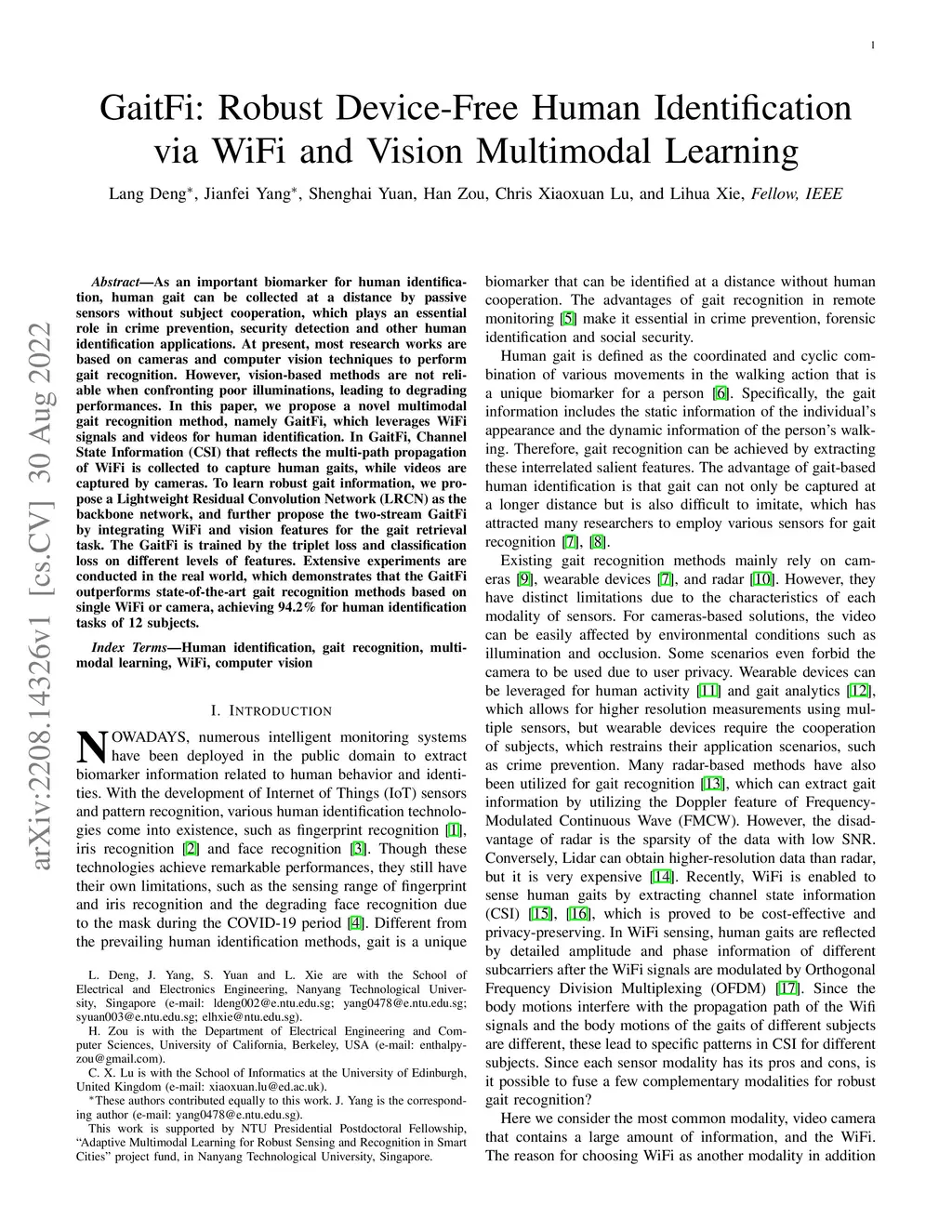 GaitFi: Robust Device-Free Human Identification via WiFi and Vision