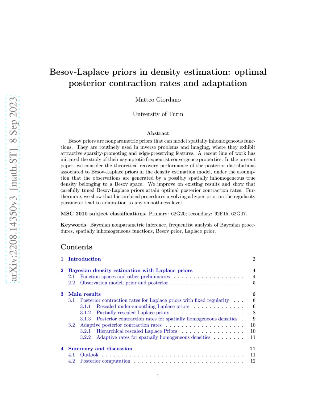 Besov priors in density estimation: optimal posterior contraction rates