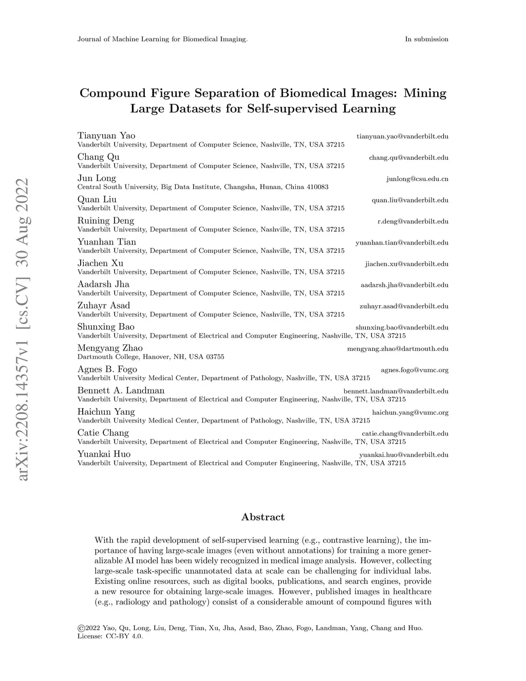 Compound Figure Separation of Biomedical Images: Mining Large Datasets